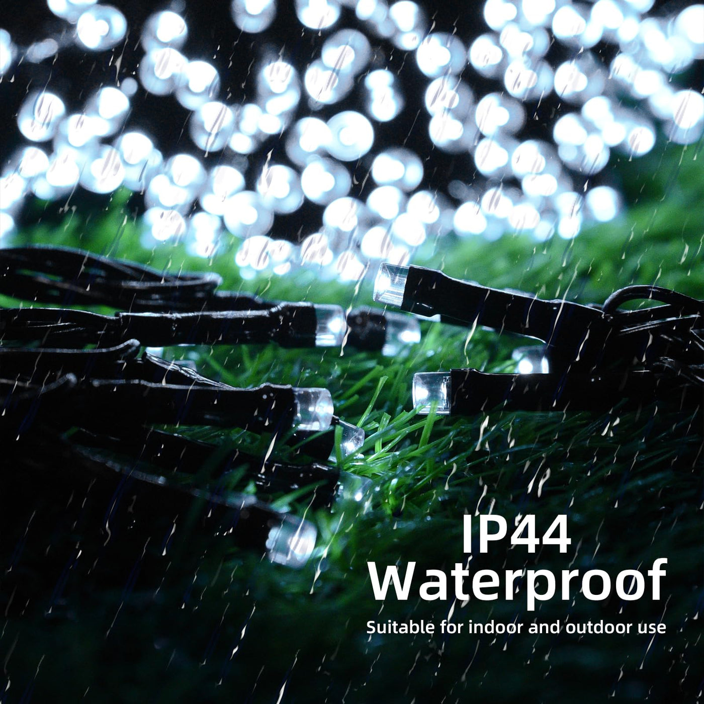 Q: Are the Lycklig solar Christmas lights waterproof?A: Yes, the Lycklig solar Christmas lights have an IP44 waterproof rating, making them suitable for outdoor use in various weather conditions.
