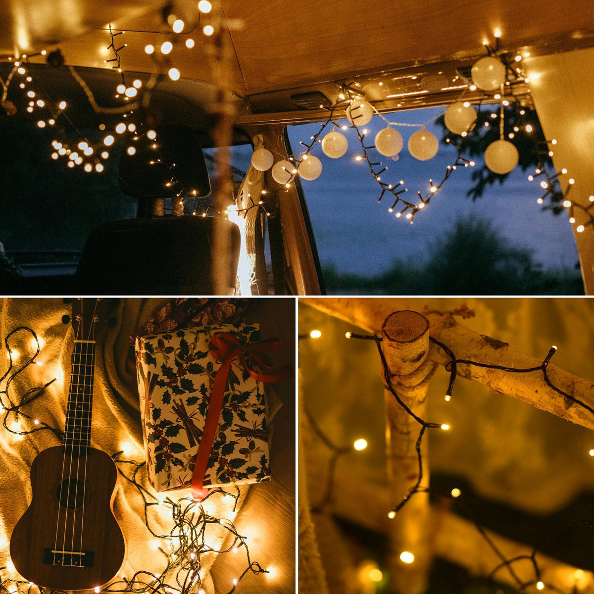 82ft length with warm white LED bulbs for a cozy atmosphere.