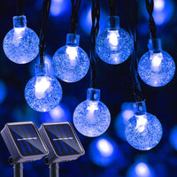 Solar Outdoor String Lights, 2 Pack Total 71Ft 120 Led Crystal Ball Waterproof Solar Powered Globe Lights For Garden Patio Bistro Cafe Gazebo Holiday Party Outdoor Decorations (Blue) Specification ?Light Color: Blue ?Led Quantity: 60Led ?Solar Panel: 2V ?Battery: Built-In Aa Ni-Mh Battery ?Lead Cable: 2M/6.56Ft ?Light Spacing: 0.5Ft ?Light Length: 8.85M/29Ft ?Total Length: Total 10.85M/35.6Ft ?Charging Time: 6-8 Hours ?Working Time: 8-12 Hours ?Switch: On/Off& Mode ?Working Mode: 8 Modes Feature Energy Saving ?With Built-In Rechargeable Ni-Mh Aa Battery, Eco-Friendly Solar Powered Way Can Save Electricity And Your Trouble Of Replacing Battery Frequently. Solar Panel Convert Sunshine Into Electricity During The Day, And It Lights Up Automatically At Night For More Than 8 Hours If Solar Panel Absorb Enough Sunlight During Day. 8 Lighting Modes ?The Solar Outdoor Lights With 8 Modes (Combination, In Wave, Sequential, Slo Glo, Chasing/Flash, Slow Fade, Twinkle/Flash, Steady On), That Can Meet Your Various Lighting Needs. Memory Function ?The Solar String Lights Build In Memory Chip, Can Save Your Last Mode Setting And No Need To Reset Mode Every Day. Ip65 Waterproof ?Ip65 Waterproof String Lights, Can Withstand All Kind Of Weather, Including Heavy Rain And Snow, Perfect For Indoor And Outdoor Decorations. Light Sensor ?With Light Sensor, The Solar Globe Lights Will Auto Light Up At Night And Auto Off At Daytime. Also You Can Cover The Panel By Yourself Then Turn On, It Will Light Up. Package Content ?2*60 Led String Lights ?2*Solar Panel With Ground Stake ?1*User Manual Warm Tip ?It Is Suggested The Solar Panel To Be Fully Charged For 8H At The First Use. ?Turn The Light On And Set The Light Mode Before Charging The Solar Power, So It Will Light Up At Dusk In Your Setting Mode.