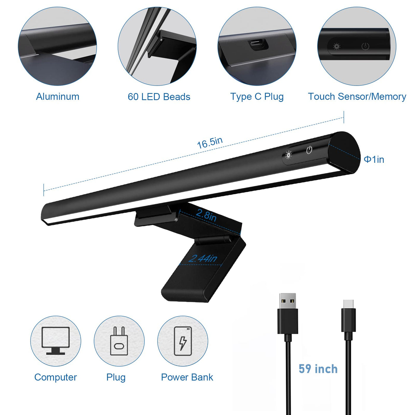 LYMAX focuses on desk lamp for decades and will alway follow the idea to provide superior stuff to all customers This monitor light bar can be multi-functionally used as game light, desk lamp, task lamp for officehomeworkvideo conferencevideo callstudygame compatible with: 15-24 inch flatcurved computers and 14-17 inch laptops Specification: Voltage:5V Wattage:5W Package: monitor light bar *1 user manual * 1 usb-c cable cord *1
