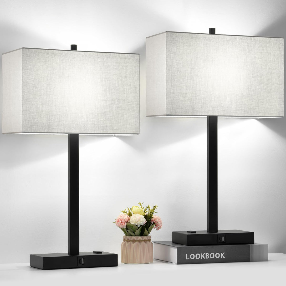 Q: Do these table lamps provide USB charging options?A: Yes, these lamps are equipped with USB A and USB C ports (5V/2.1A) as well as a standard AC outlet, allowing you to charge up to three devices simultaneously, even when the lamps are turned off.