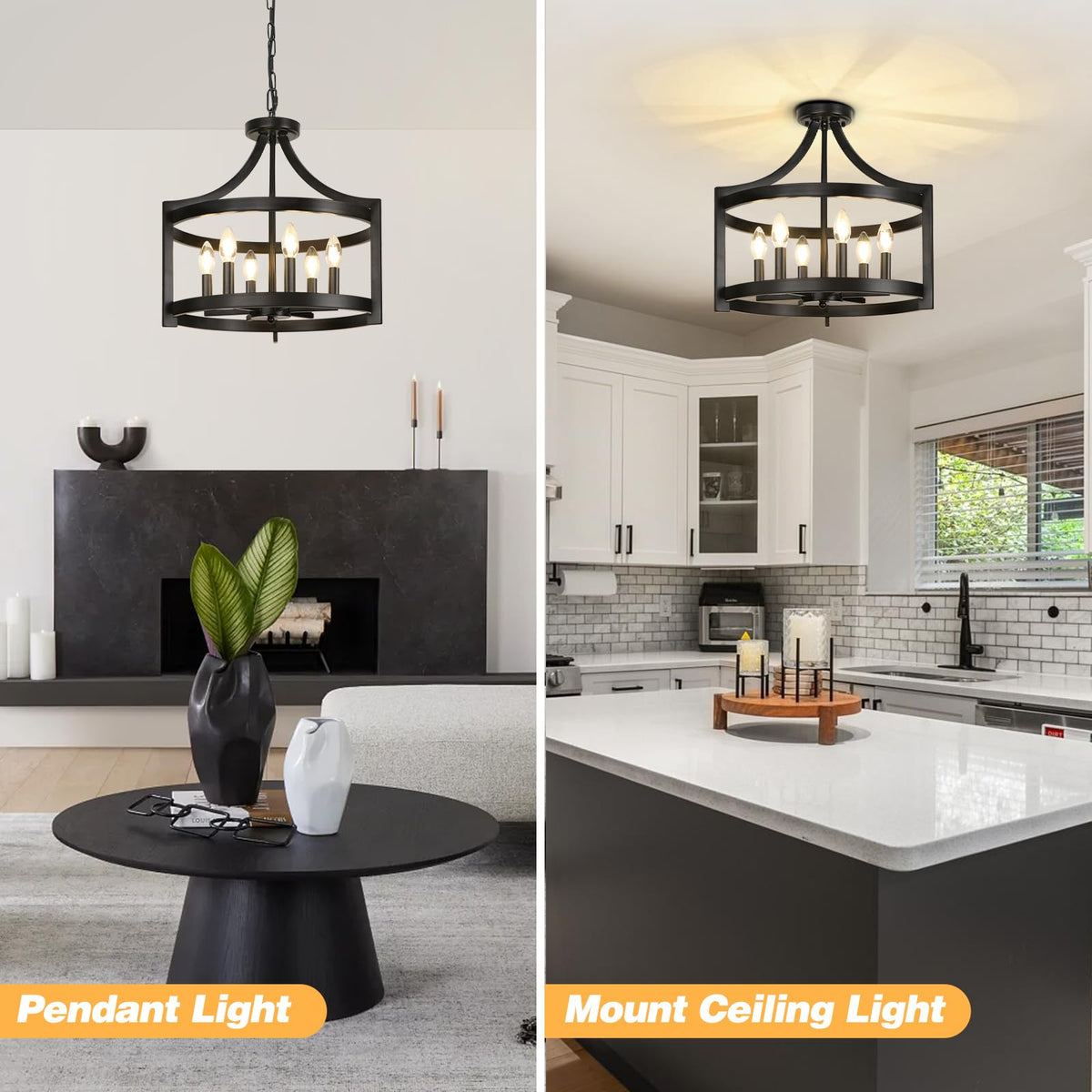 Lynpon 6 Lights Large Modern Farmhouse Chandelier, 19'' Convertible Semi Flush Mount Ceiling Light Fixture Hanging Light Rustic
