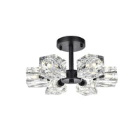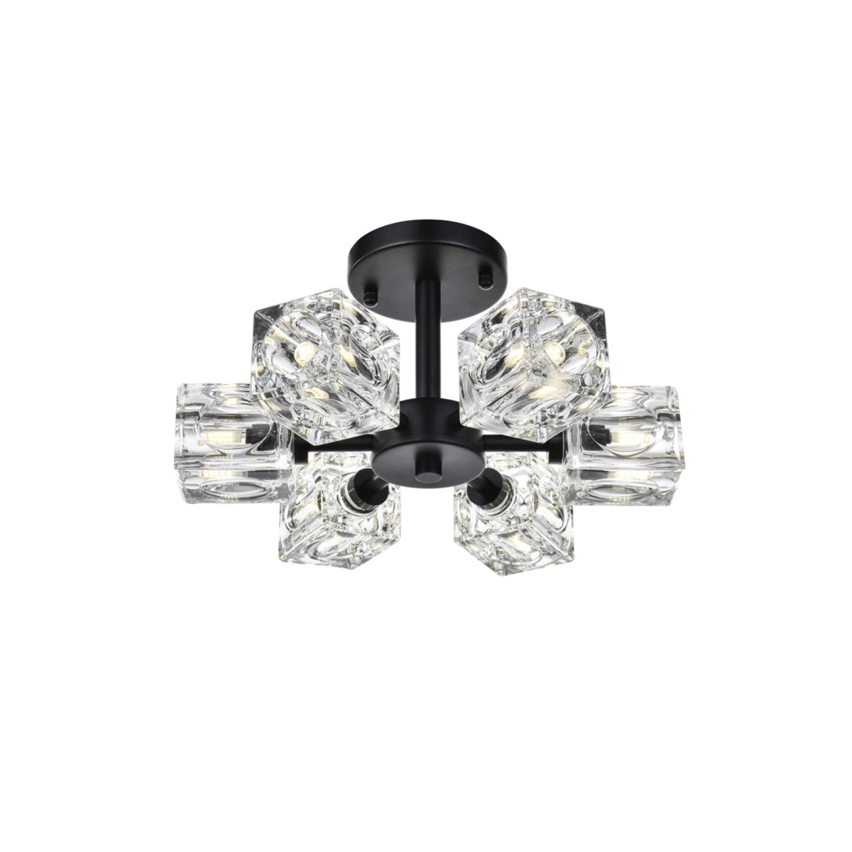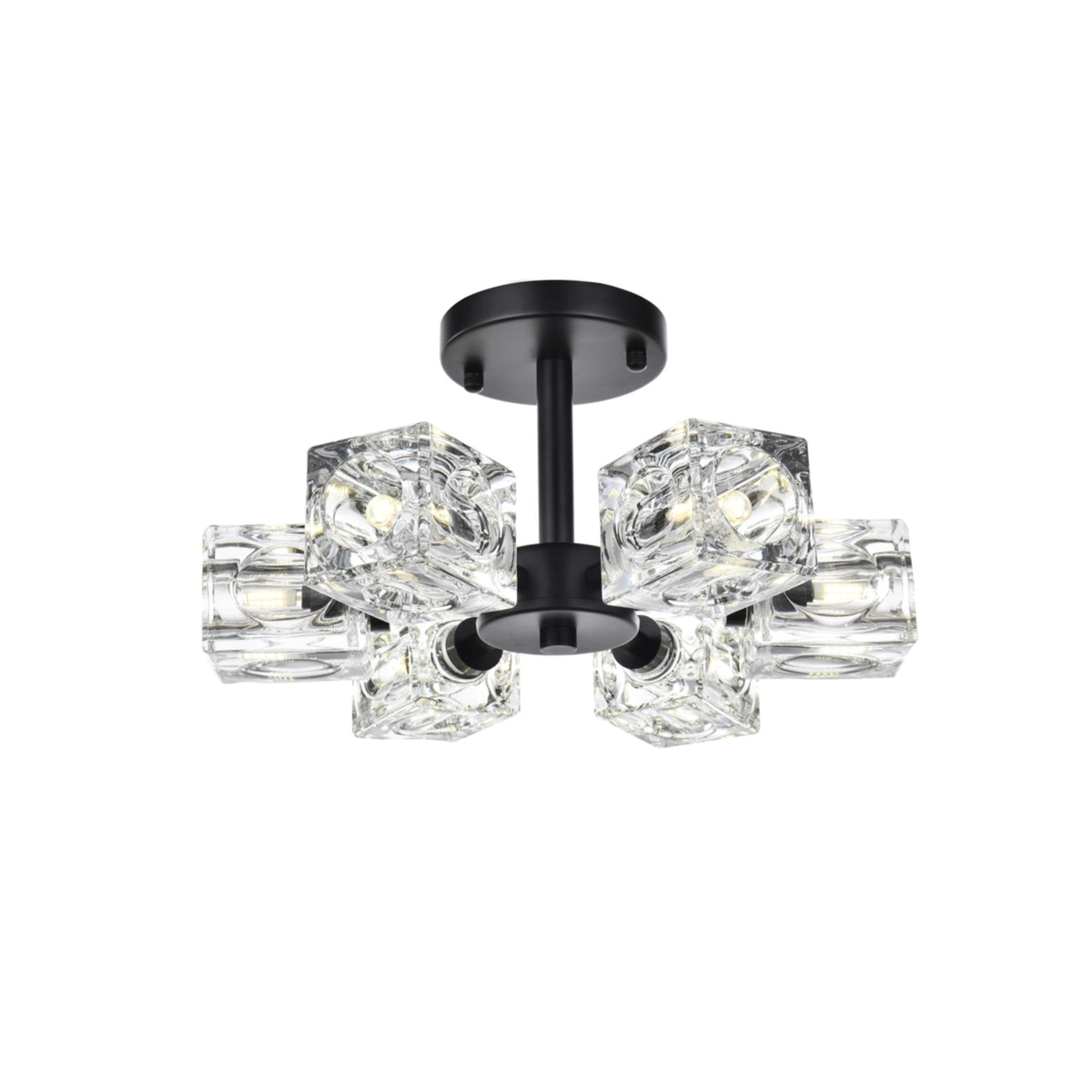 Effortlessly elegant our Lyra 14-inch flush mount redefines your space projecting six lights each adorned with distinctive dimpled square glass for a dynamic touch. Crafted with durability in mind the iron base adds a hint of industrial elegance. Its flush design hugs the ceiling combining style with space-saving practicality. Enjoy easy assembly and a 360-degree beam spread casting warm and inviting light throughout your space. Illuminate with Lyra's timeless radiance.