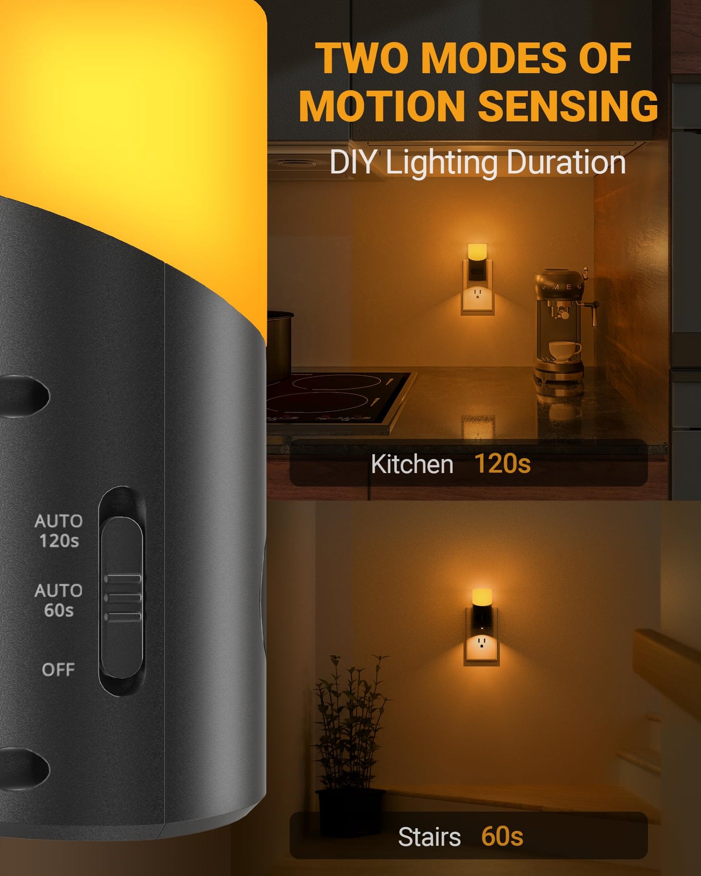 Lyridz Amber Night Lights Plug into Wall, Motion Sensor Night Light Plug in, 1-150LM Dimmable Night Light Indoor for Hallway, Stairs, Bedroom, Garage, Bathroom, Toilet (2 Pack)