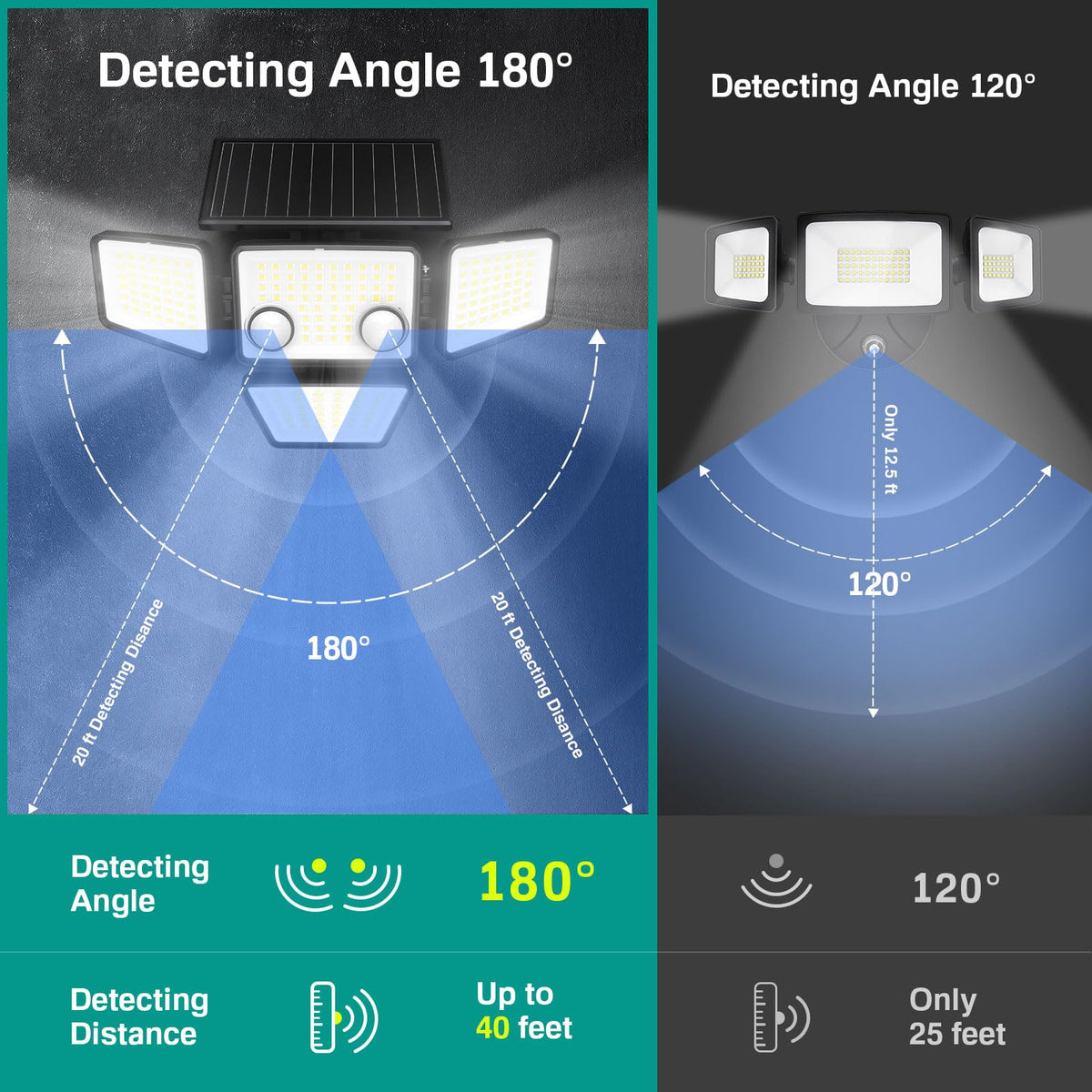 - **Upgraded Dual PIR Motion Detection**: Equipped with two powerful PIR motion sensors, our solar lights detect movement up to 40 feet away within a 180-degree range, ensuring comprehensive coverage and enhanced security for your property.