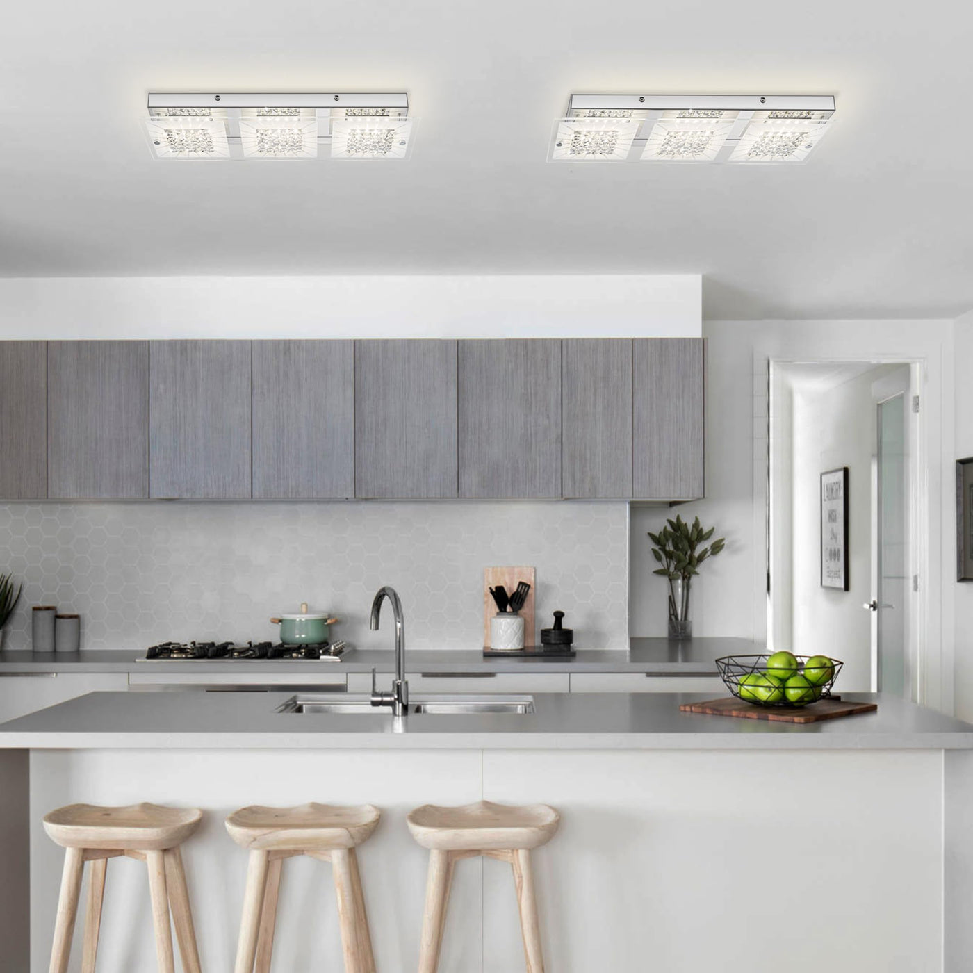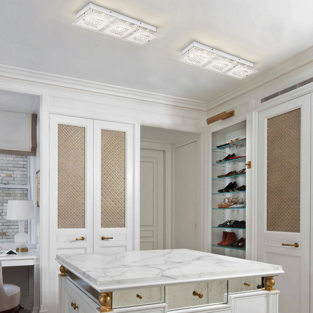 Lzawvm 18" Dimmable Led Crystal Flush Mount Ceiling Light 4000K For Kitchen & Bathroom