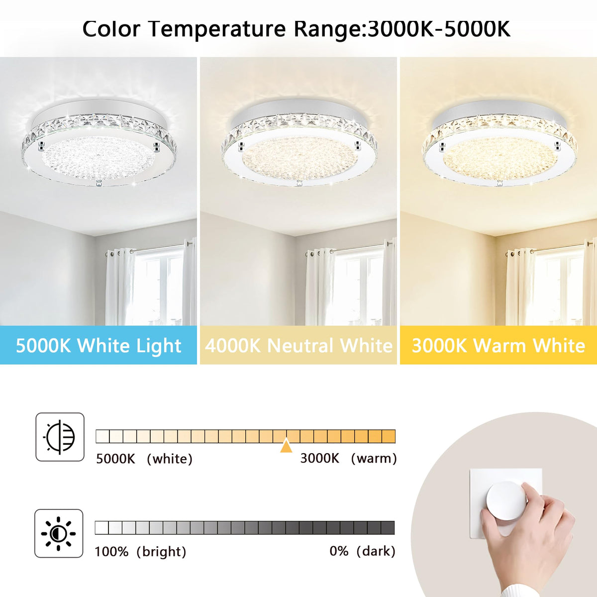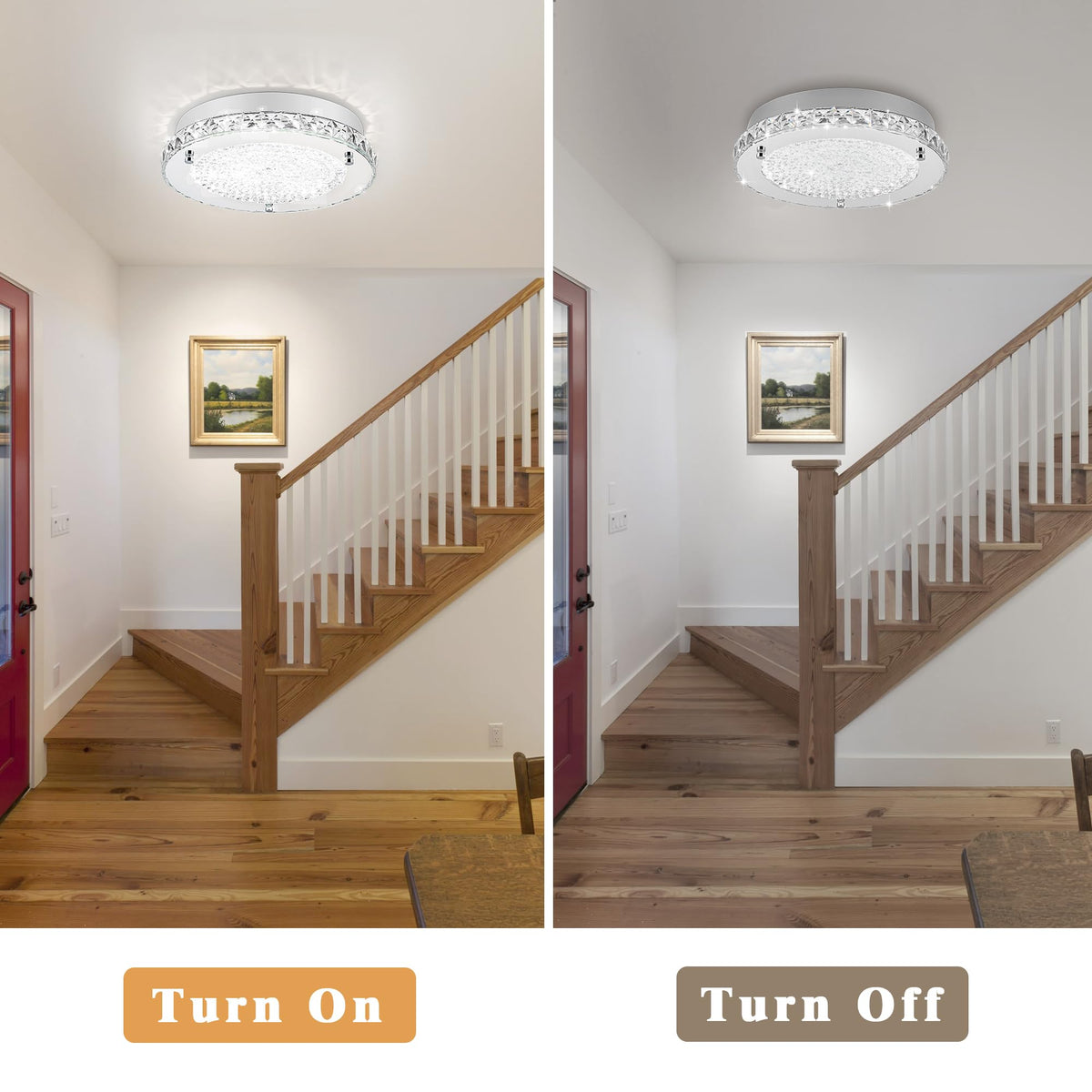 Lzawvm Crystal Ceiling Light Fixture Flush Mount Modern Led Ceiling Lights For Bathroom Bedroom Kitchen, Diameter 11 Inch, 18W,