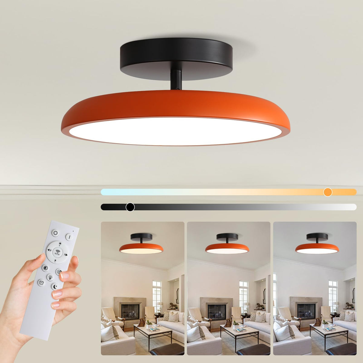 LED Ceiling Light Semi Flush Mount, Vintage Orange Adjustable Ceiling Light Fixtures, Remote Control 3CCT Dimmable, 15.7 Inch Ceiling Lamp for Hallway Livingroom Dining Room Bedroom Balcony LED Ceiling Light; Semi Flush Mount Ceiling Light; orange ceiling lights ;mid century light fixture,mid century modern light fixture,modern light fixtures ceiling,Vintage Orange Adjustable Ceiling Light Fixtures; Remote Control 3CCT Dimmable 15.7 Inch Ceiling Lamp; for Hallway Livingroom Dining Room Bedroom