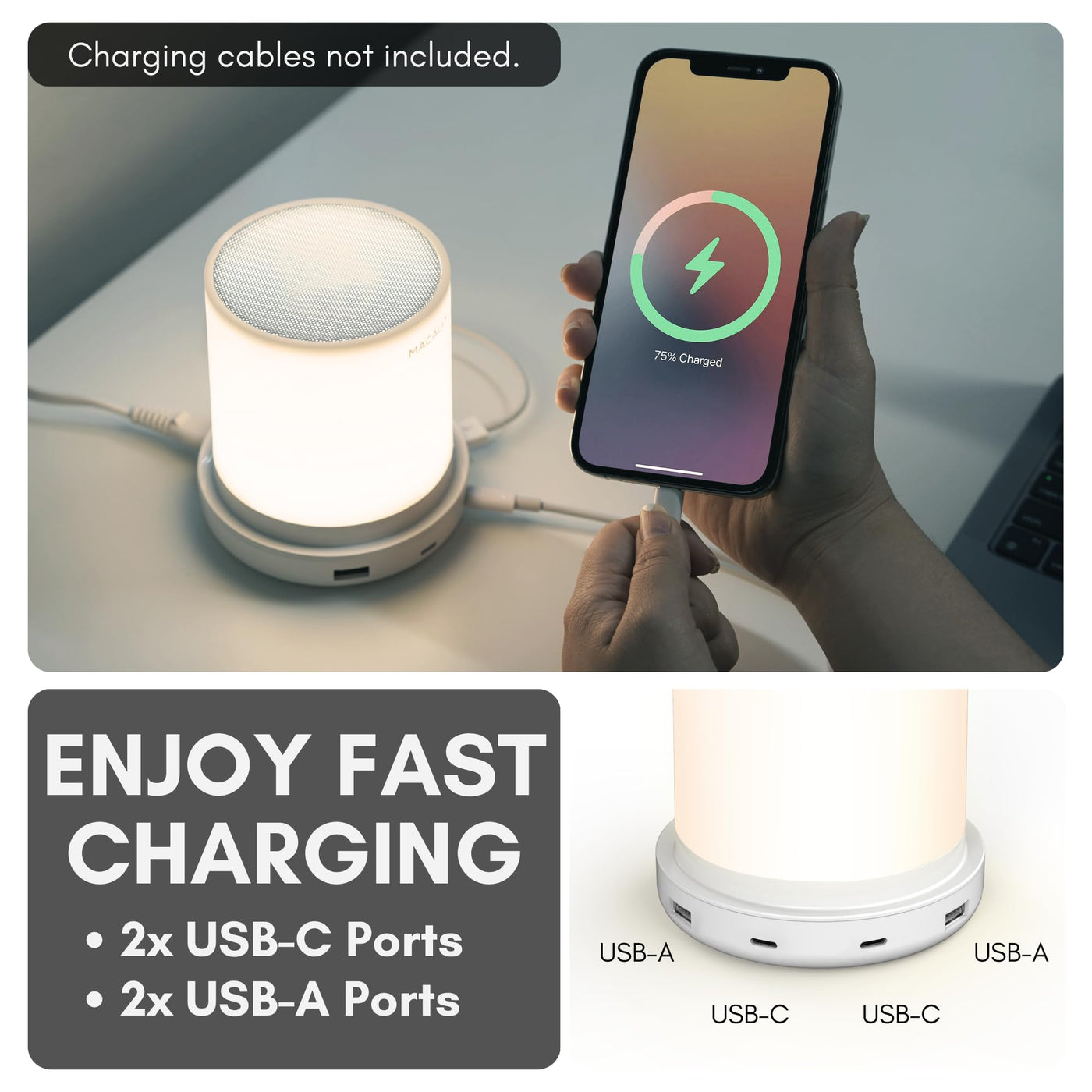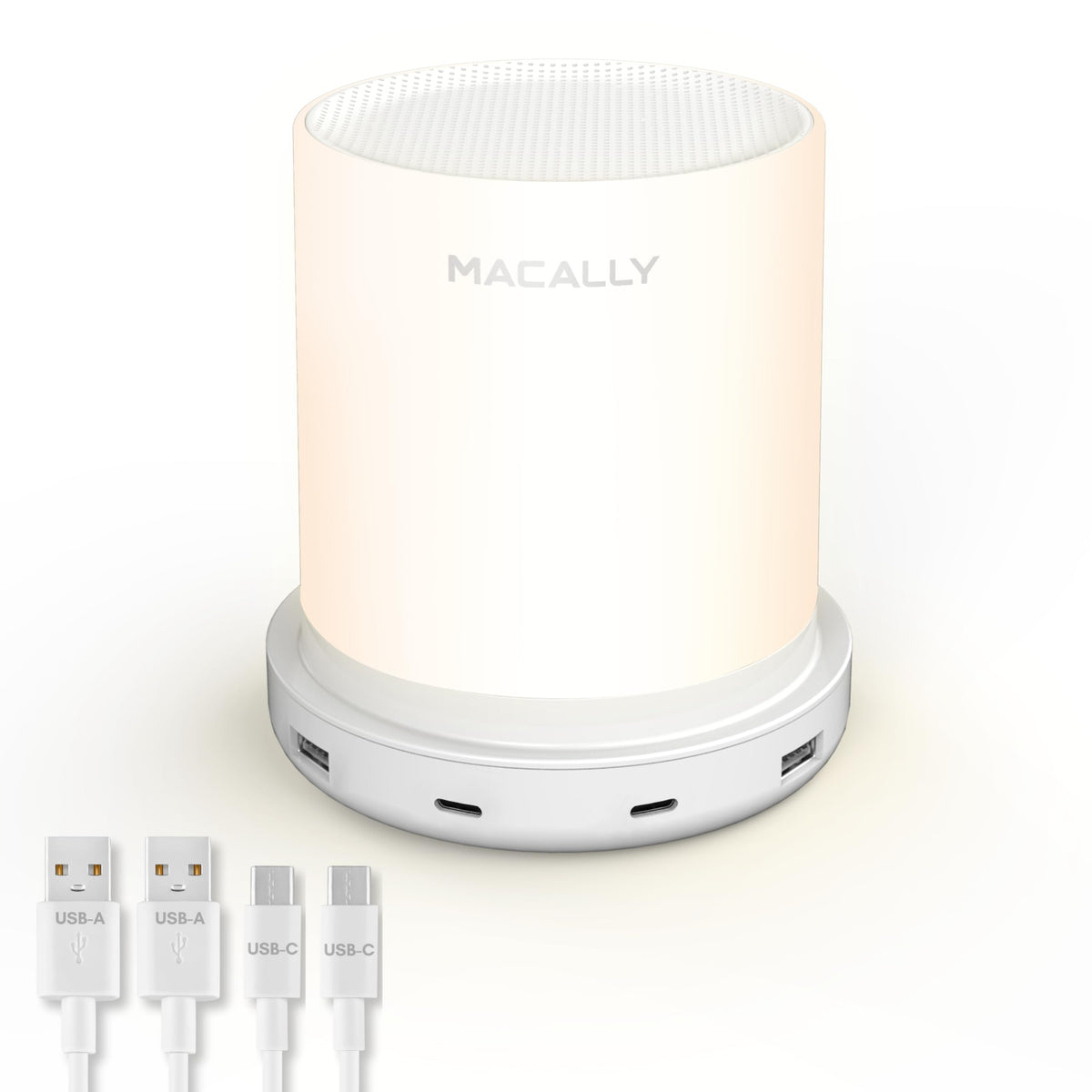 The Macally Usb Touch Lamp This Sleek, Compact Lamp Transforms Your Bedside Into A Versatile Charging Station With 4 Smart Ic Usb Ports, Offering Fast And Safe Charging For Smartphones, Tablets, And More. Equipped With 2 Usb-C And 2 Usb-A Ports, It Delivers Up To 20W Of Power For Quick, Reliable Charging. The Touch-Sensitive Control Lets You Easily Turn The Lamp On Or Off And Adjust The Brightness To Suit Your Mood. Featuring 3 Adjustable Brightness Levels And A Soft 2700K White Light, It'S Ideal For Creating A Cozy Ambiance Or Minimizing Light Disturbance. Say Goodbye To Cluttered Outlets-This Lamp Combines Lighting And Charging In One Convenient, Space-Saving Solution.