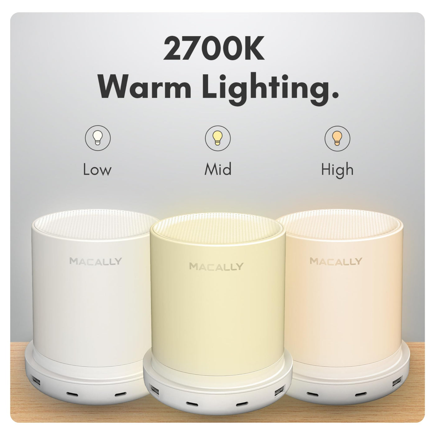 Q: Is the lamp suitable for use as a night light?A: Yes, the Macally Small Bedside Lamp is designed to be a great night light. It offers 3 brightness levels (low, medium, high) with soft 2700K white light, which is perfect for setting the right mood without disturbing others.
