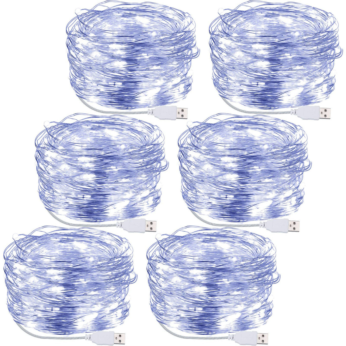 Macarrie Usb String Lights 33 Ft 100 Led Fairy Lights Powered String Lights For Indoor Outdoor Wedding Party Tree Home Festival Garden Decoration (Cool White, 6 Pcs)