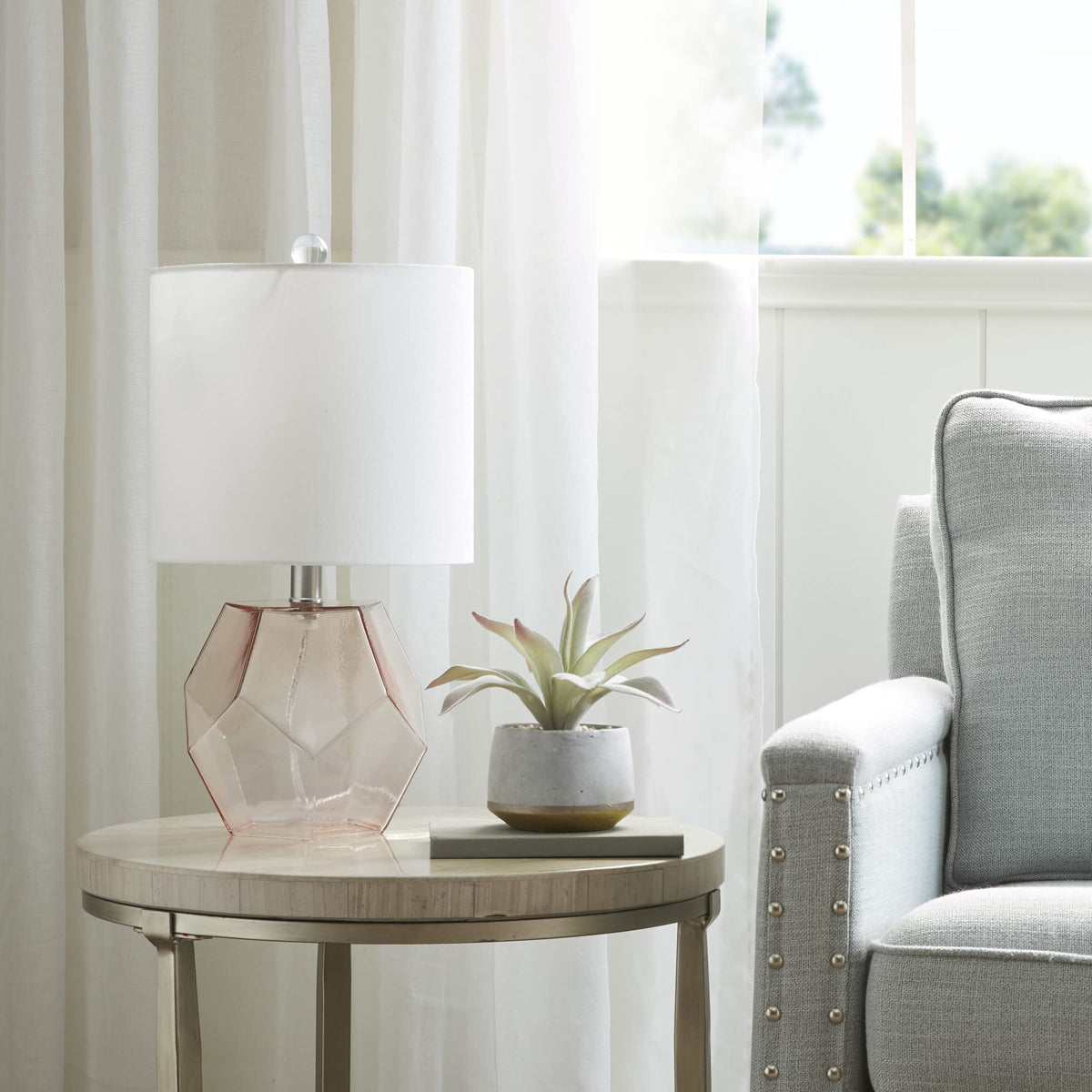 Madison Park 510 Design Pink Glass Table Lamp - 18.85"H, Fabric Shade, Rotary Switch, 60W