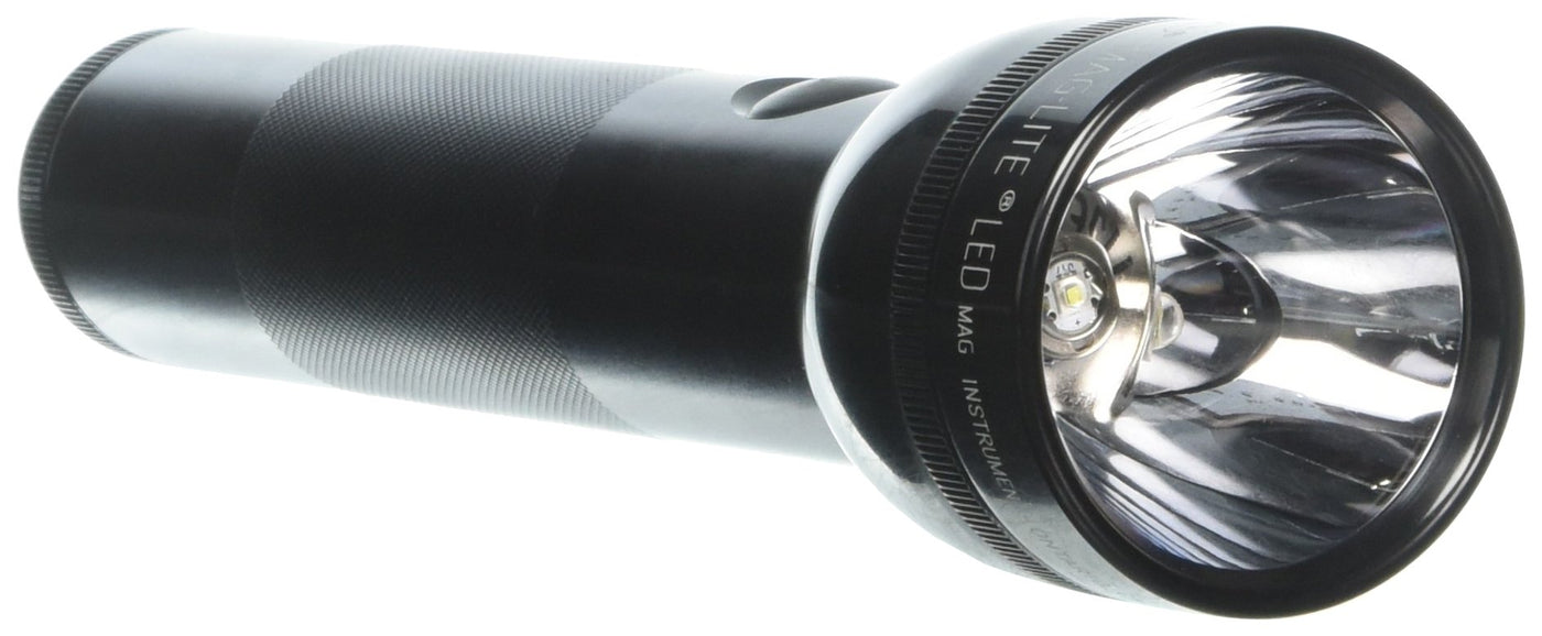 This LED 2-Cell D Flashlight (Black) from Maglite is an update of the well-known, durable Maglite flashlight powered by 2 D-size alkaline batteries--now featuring an LED lighting element. This rugged, water-resistant aluminum flashlight has a range of 977 (298 m) and maximum output of 134 lumens. It has a runtime of 8.0 hours and features Intelligent Energy Source Management, which continuously monitors the balance between high brightness and efficient power usage, in order to prolong battery life.