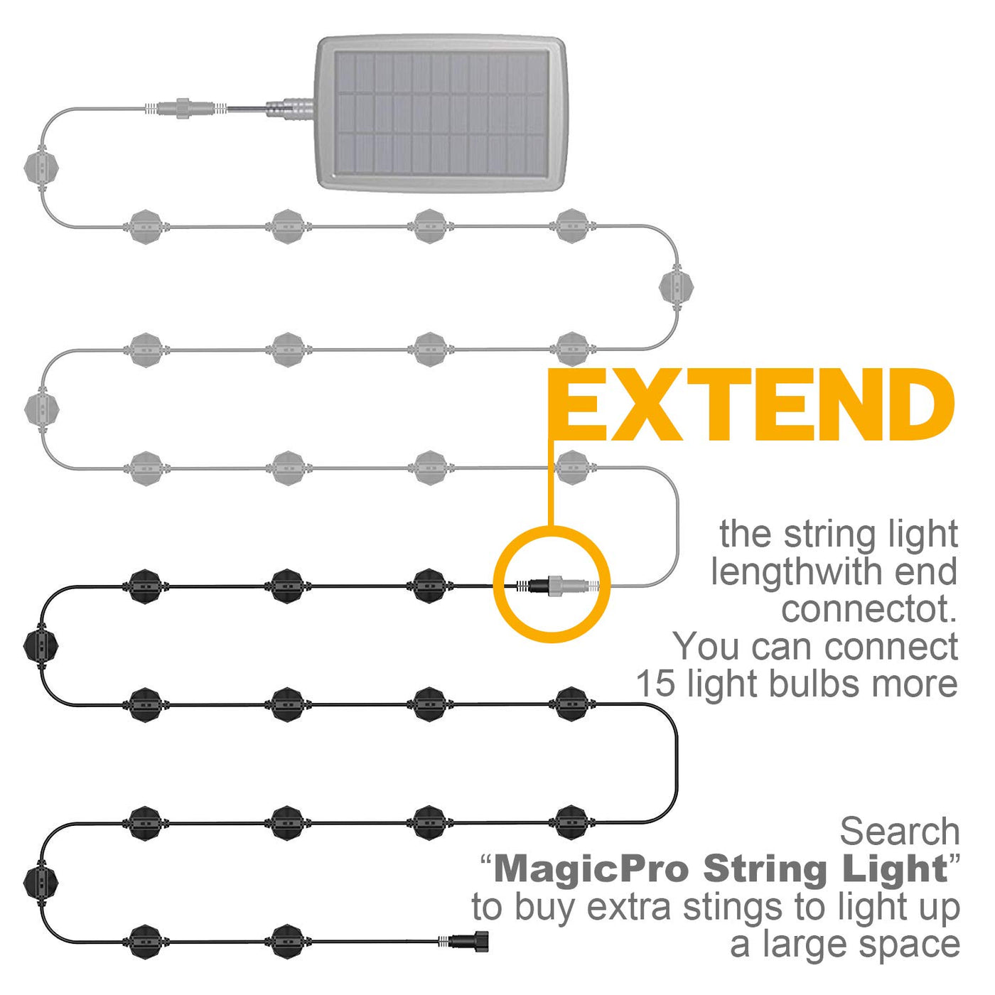 Solar String Lights, MagicPro 15 LED Light Bulbs Solar String Light Waterproof Heavy Duty Outdoor Solar Lights 44 Ft for Garden Yard Deck Warm White
