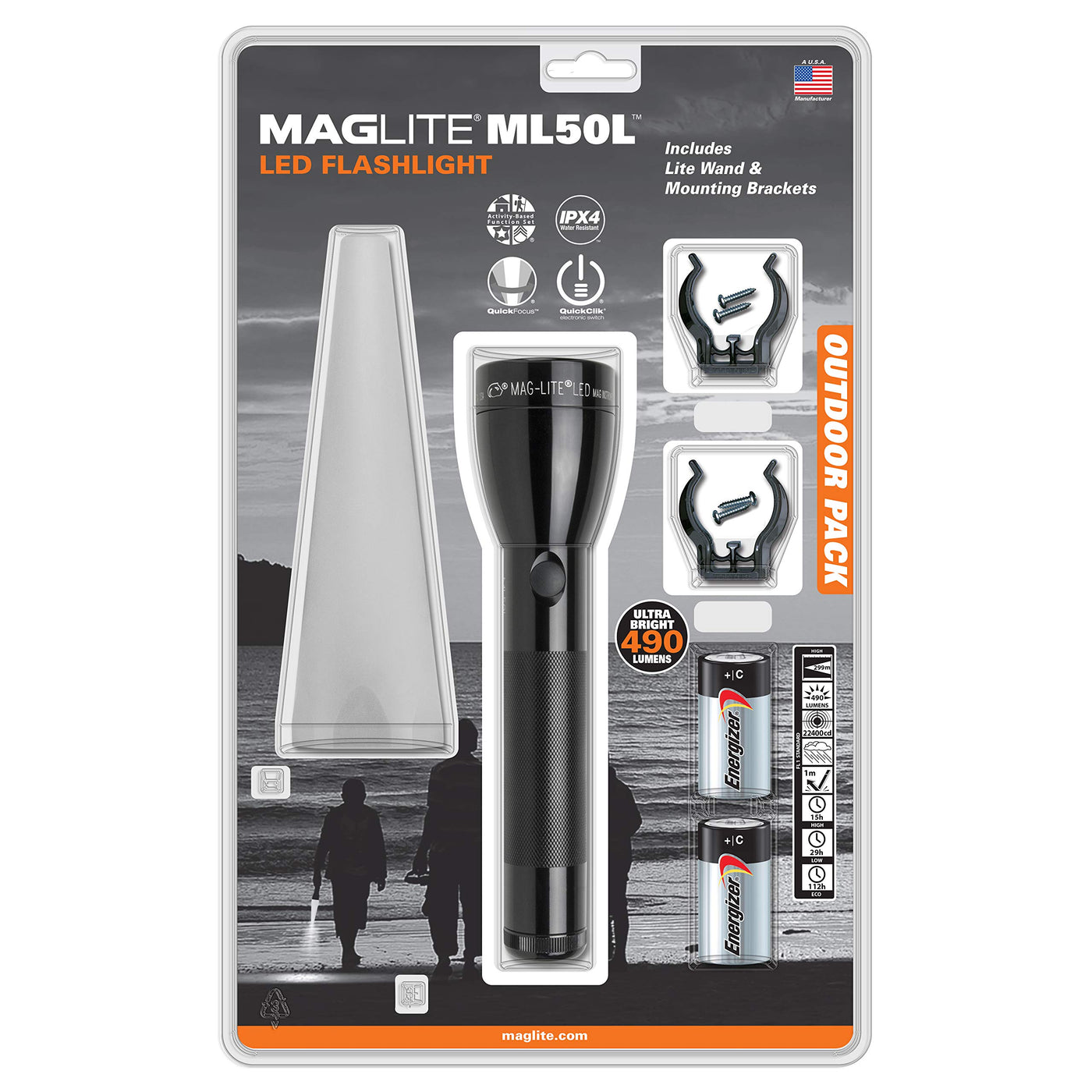 Maglite Ml50L-I2Tqg: Ml50L 2 Cell C Led Outdoor Adventure Pack Black, Adjustable Beam Angle, Water Resistant, Battery Powered