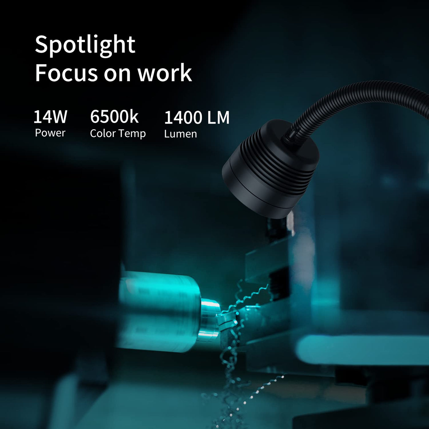 Specification Product Name:Led Work Light Lamp Material: Aluminum Alloy Light Source Type. Led Power: 14W Lifespan: Over 50,000 Hours Input Voltage: Ac110~240V, Can Input 120 Volt Voltage, Plug With Transformer Color Temperature: 6000K Luminous Flux: 1400 Lumens Gooseneck Length: About 20 Inches Mounting: Controllable Strong Magnetic Switch Type: Button Switch Power Cord Length: About 55 Inches Plug Type. American Two-Pin Plug Function: Adjustable Magnetic Base, Flexible Gooseneck Tube Product Certification. Ce. Fcc. Rohs Use Range Including Cnc. Lathe. Milling Machine. Drilling Machine. Punching Machine. Woodworking. Workbench. Auto Repair Shops. Stores. Stores. Band Saws. Tools.