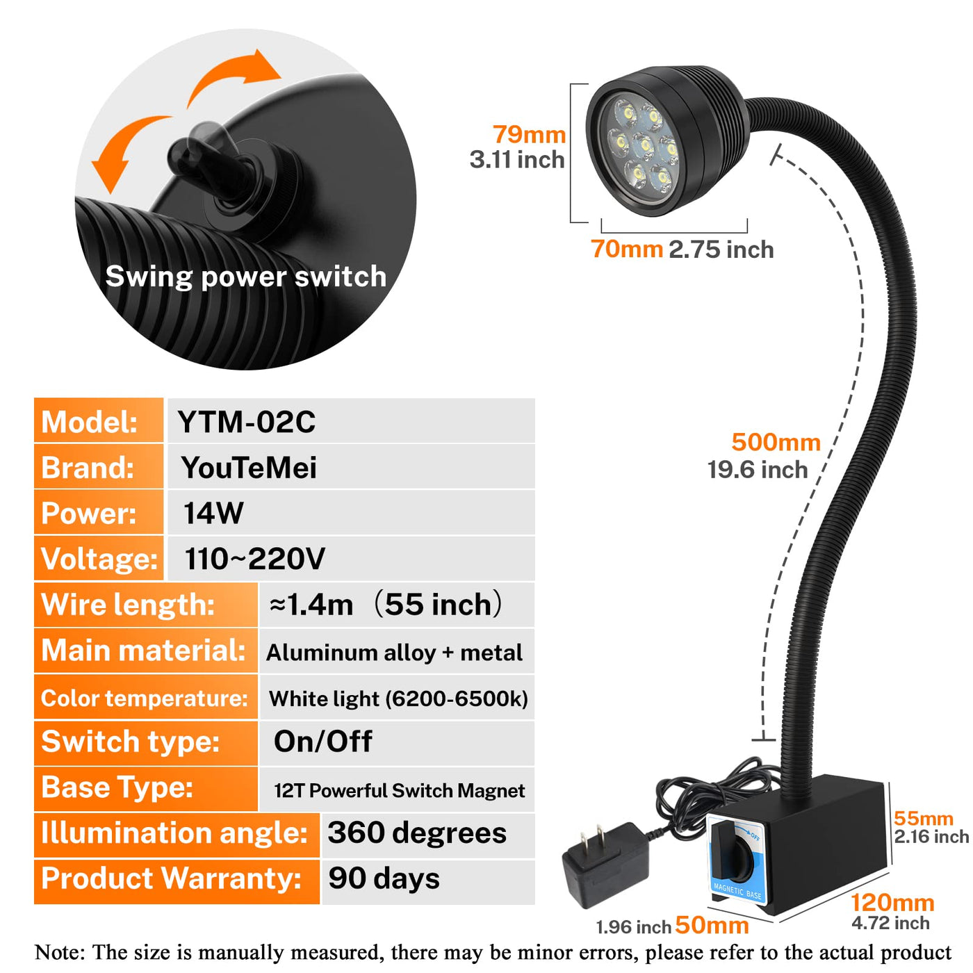 14w LED can provide enough brightness. The concentrated light can provide brighter illumination for your work area. The 19.6 inch goose neck can freely bend the illuminator to any angle and direct the light to the position you need. The magnetic base can It can be adsorbed on the surface of metal devices at any time