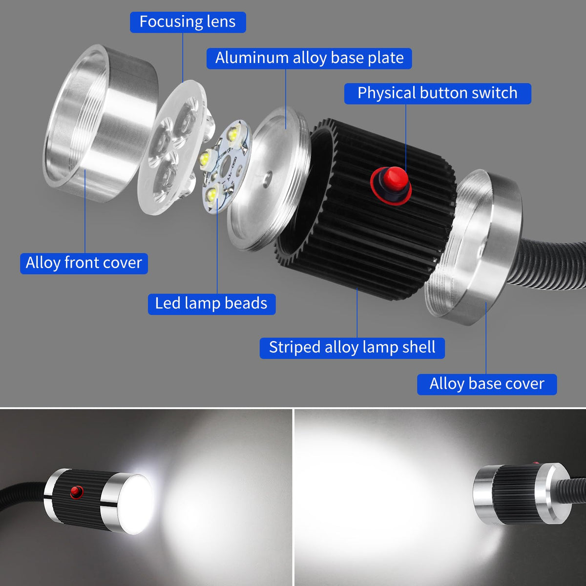 10W Magnetic Led Work Light With Flexible Gooseneck And Magnetic Base, Magnetic Led Lamp 900 Lumen For Work Bench, Led Sewing Machine Light, Auto Repairing, Grill Lighting, Reading Lighting Specification: Product Name: 10W Powerful Magnetic Base Led Flexible Gooseneck Work Light. Lamp Material: Aluminum Alloy Head Size: 2.8 X 2.1 Inch Gooseneck Length: 24 Inch Power Cord Length: 60 Inch Package Size: 10.04 X 7.99 X 2.8 Package Weight: 1.65 Pound Working Power: 10 W Input Voltage: Between 110V To 240V Color Temperature Range: Between 6500K Luminous Flux: 900 Lumens Light Source Type: Led Number Of Led Beads: 3 Life: More Than 50,000 Hours Light Color: White Plug Type: American Safety The Two-Pin Plug Function: Adjustable Magnetic Base, Flexible Gooseneck Package Included: 1 * Workbench Light Product Certification: Ce. Fcc. Rohs Product Features: Strong Magnetic Base: Wall Mount Work Light Can Be Solidly Attached To Any Steel Surface Such As Workbench, Lathe, Drill Press And Milling/Sewing Machine. No Need To Worry It Will Sagg Or Fall Down During Working. Safe And Vison Protection: No Radiation, Zero Flicker And Not Dazzling. Longer Service Life & Energy Saving: 90% Energy Saving Comparing To The Traditional Light And Up To 50,000 Hours Life Expectancy 360 Rotation Gooseneck: Easily To Be Adjusted To Any Accurate Angle For Your Specific Work Aluminum Alloy Sealed Lampshade: Lampshade Made Of Aluminum Alloy, With High Strength And Durability. 12-Month Warranty:No Satisfied, Free Reason For Return; We Could Also Resent You New One Due To Quality Problem. Please Feel Free To Contact Us And ''Ask A Question'' And We Will Be Online 24 Hours A Day. Scope Of Use: Uses Include But Are Not Limited To Cnc, Lathes, Milling Machine, Drilling Machine, Punching Machine, Woodworking, Workbench, Auto Repair Shops, Stores, Band Saws, Tools, Stove.