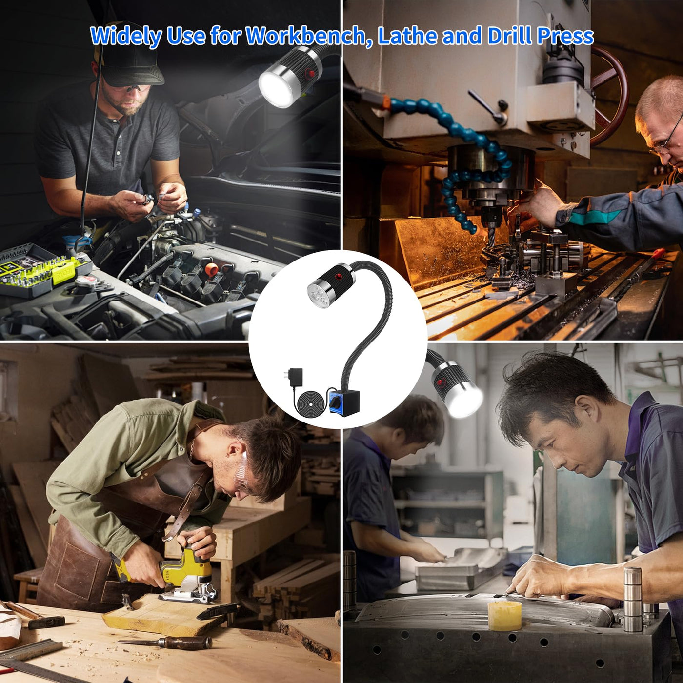 Magnetic Work Light, Led Work Light With Flexible Gooseneck And Magnetic Base, Shop Tool Lamp For Lathe, Work Bench, Sewing Mach