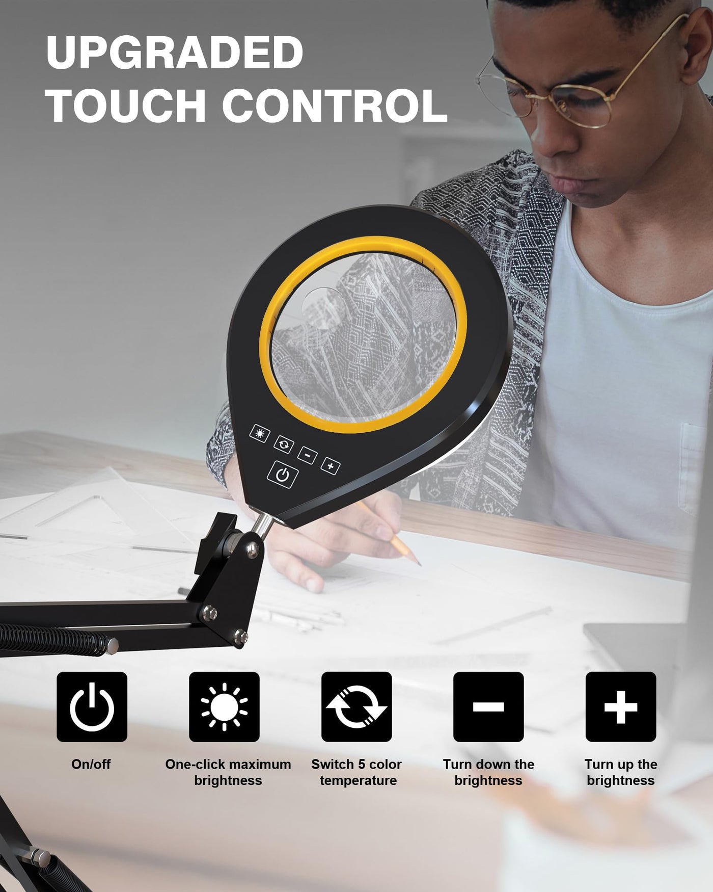 Magnifying Glass With Light, 10X & 5X Lighted Magnifying Glass, Stepless Dimmable Magnifier With Lamp, Adjustable 10 Brightness