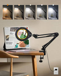 Magnifying Glass With Light Magnifying Glass Lighted Magnifying Glass Magnifying Glass With Light And Stand Magnifier With Light Magnifying Lamp Magnifying Glasses For Close Work Magnifying Glass With Light, 10X & 5X Lighted Magnifying Glass, Dimmable 5 Color Mode & 10 Brightness Level Stepless Magnifying Glasses For Close Work Crafts Reading Painting Hobby Workbench Experience Clear, Detailed Magnification With The 10X & 5X Lighted Magnifying Glass, The Perfect Tool For Close Work, Crafts, Reading, Painting, And Other Hobby Projects. Whether You'Re Working On Intricate Details Or Broader Views, This Magnifying Glass Offers Both 10X And 5X Magnification Options To Suit Your Needs. Designed For Precision, The Dimmable Led Light Provides The Perfect Illumination With 5 Color Modes And 10 Adjustable Brightness Levels, Ensuring The Ideal Lighting For Any Task. High-Quality Magnification And Lighting The 10X Magnification Is Perfect For Detailed Tasks Like Jewelry Repair, Model Making, Or Electronics, Offering Clear And Precise Viewing. For Larger Tasks Or Broader Areas, The 5X Magnification Provides A Wider Field Of View While Still Maintaining Clarity. Customizable Lighting The 5 Color Modes And 10 Brightness Levels Allow You To Adjust The Lighting To Match Your Task. Whether You Need Bright, Cool Light For Precision Or Soft, Warm Light For Comfort, The Dimmable Light Offers Flexibility For All Your Tasks. Durable And Scratch-Resistant Lenses Made With Scratch-Resistant Lenses, This Magnifying Glass Ensures Long-Lasting Clarity. Its Built To Handle Frequent Use Without Losing Quality, Even At Higher Magnifications. The Adjustable Clamp Allows You To Securely Attach The Magnifying Glass To A Variety Of Surfaces, Including Workbenches, Desks, And Tables. The Magnifying Lens Is Easily Adjustable To Find Your Perfect Viewing Angle, Ensuring Comfort And Accuracy While You Work. Additionally, The Weighted Base Ensures The Magnifying Glass Stays Stable During Use, Even When Fully Extended.