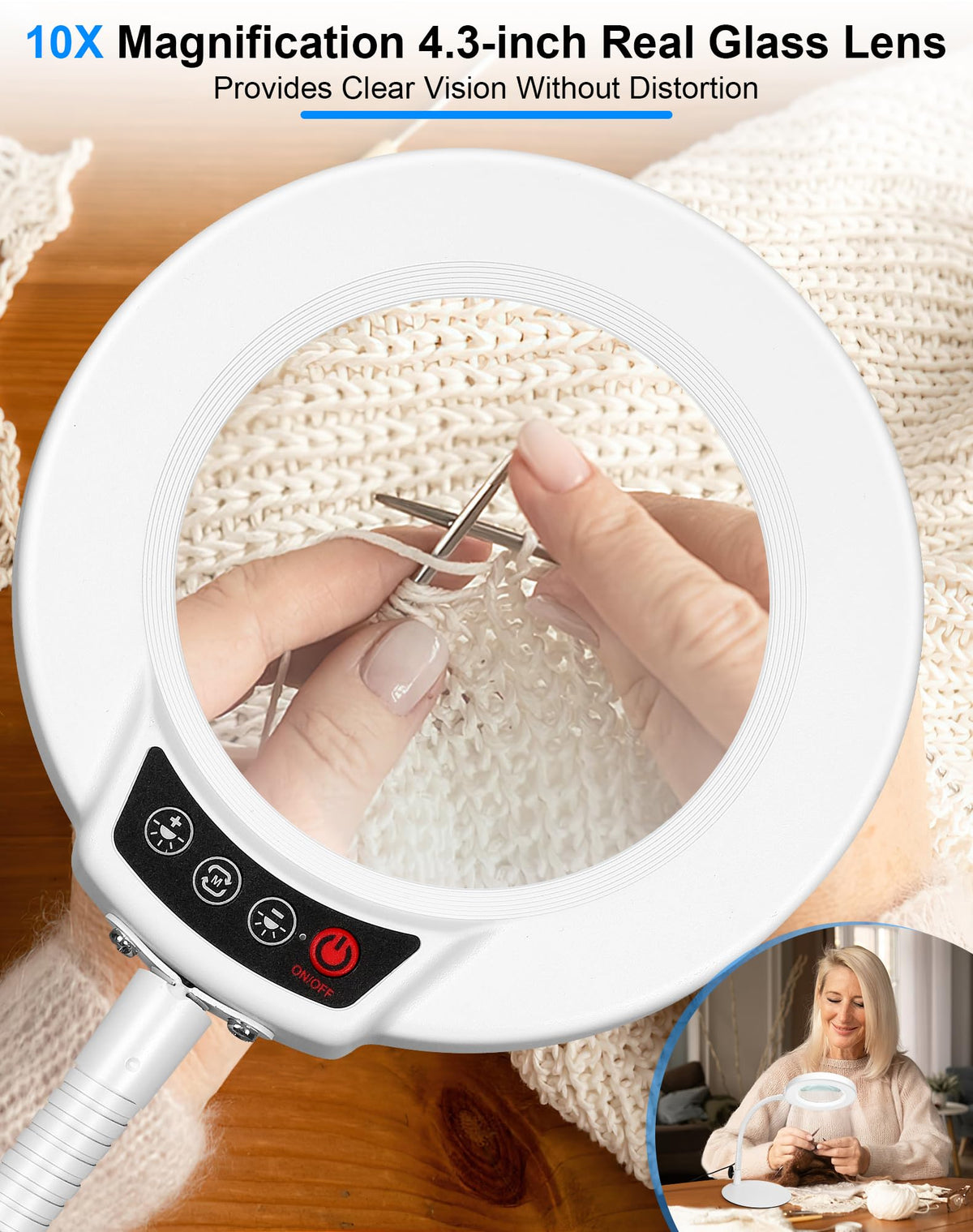 Coyeth Magnifier With Light Product Description: Our Lighted Magnifying Glass Designed With Professionals And Enthusiasts In Mind, Our Coyeth 10X Magnifying Glass With Light Is Perfect For Techs, Artists, Architects, Estheticians, And Jewelers. With Its High-Definition 4.3-Inch Glass Lens Offering 10X Magnification, This Magnifying Lamp Provides Exceptional Clarity For Close Work. Whether You Are Working On Intricate Diy Projects, Detailed Soldering, Or Precise Painting, The Adjustable 5 Color Modes And Flexible Gooseneck Ensure Optimal Lighting And Positioning. The Non-Slip Metal Base And Convenient Lamp Head Switch Add Stability And Ease Of Use, Making It A Reliable Tool For Anyone, From Retirees And Crafters To Business Owners And Homemakers. For Those With Low Vision Or Macular Degeneration, This Magnifying Lamp Enhances Visibility, Reducing Eye Strain And Fatigue. It'S A Thoughtful Gift For Your Husband, Dad, Or Any Hobbyist, Bringing Comfort And Efficiency To Tasks Like Watch Modding, Sculpting, Or Professional Crafting. Architects And Beauticians Will Also Appreciate The Hands-Free Operation And High Imaging Clarity. Boost Your Productivity And Enjoy Precision In Your Work With A Magnifying Lamp Designed To Meet The Needs Of Individual Customers And Professionals. Join Coyeth Magnifier Club To Deliver Quality And Convenience, Making It An Essential Addition To Any Workspace.