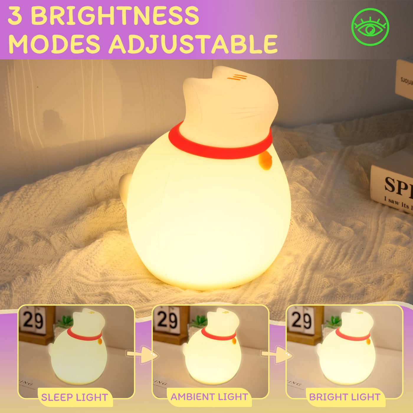 MAGOHMT Cat Night Light for Nursery, Silicone Rechargeable Night Light with Timer & 3 Modes, Touch Control Kids Bedroom Light (C