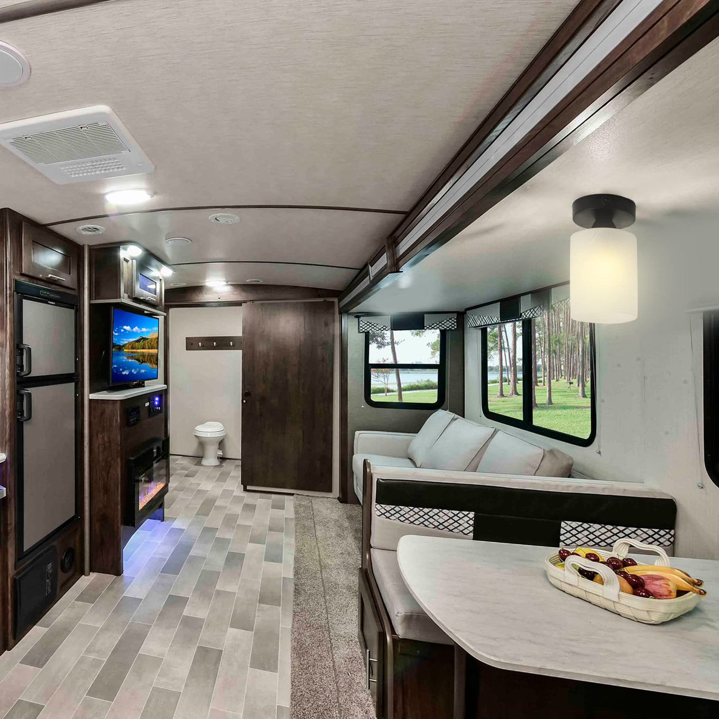 Q: What type of bulb does the Maichis Decorative 12V RV Interior Light Fixture use?A: The Maichis Decorative 12V RV Interior Light Fixture uses a replaceable 12Volts DC, E26 base G45 LED bulb, which is included with the purchase.
