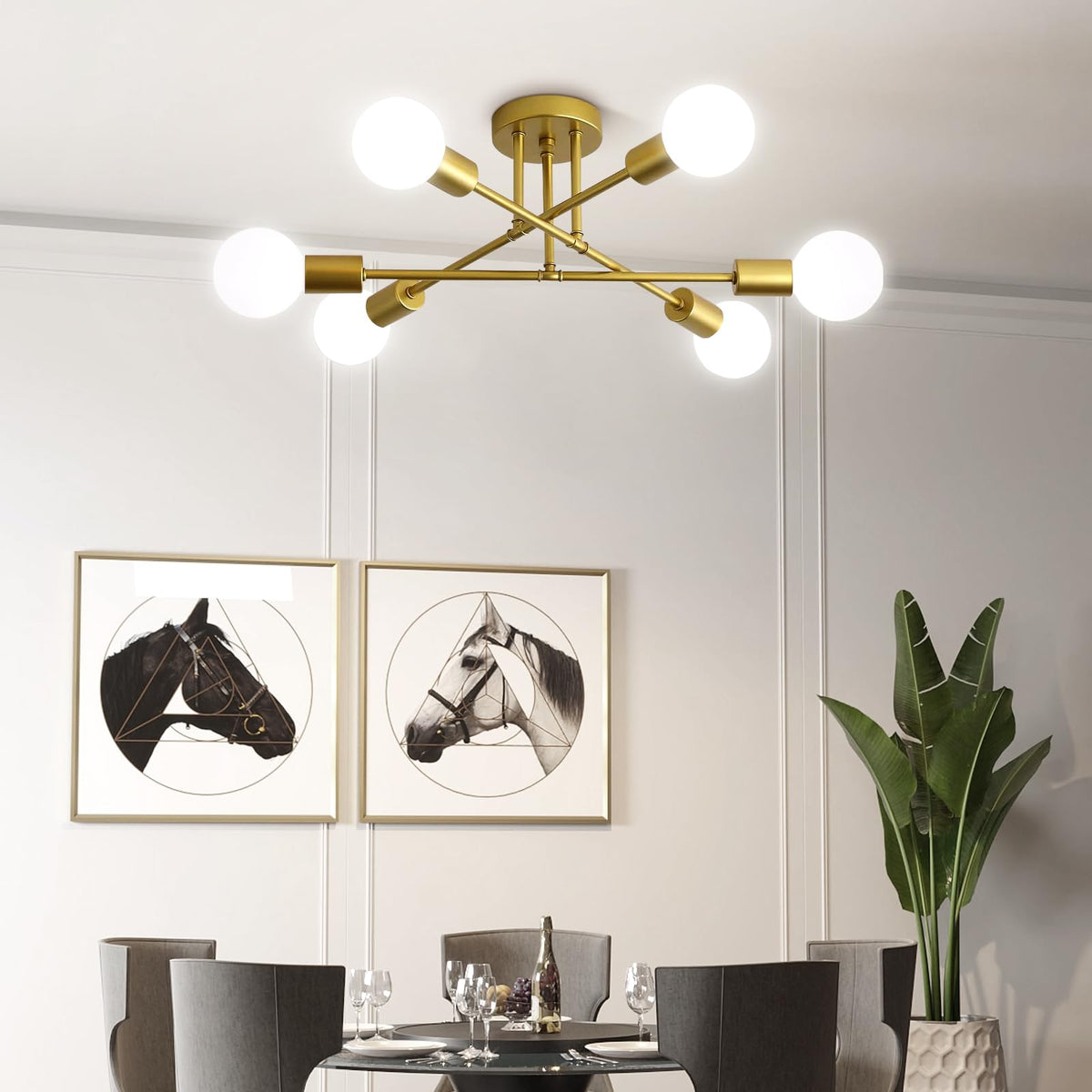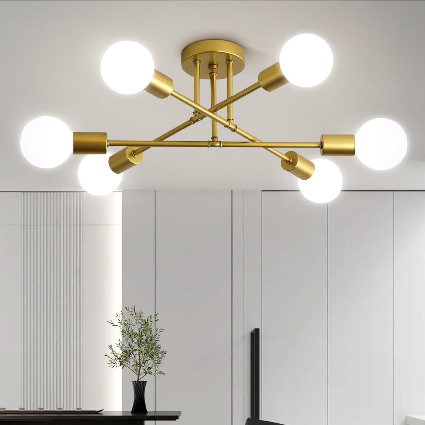 Maichixin 6-Light Ceiling Light Fixture, Modern Gold Sputnik Chandelier, Semi Flush Mount for Living Room