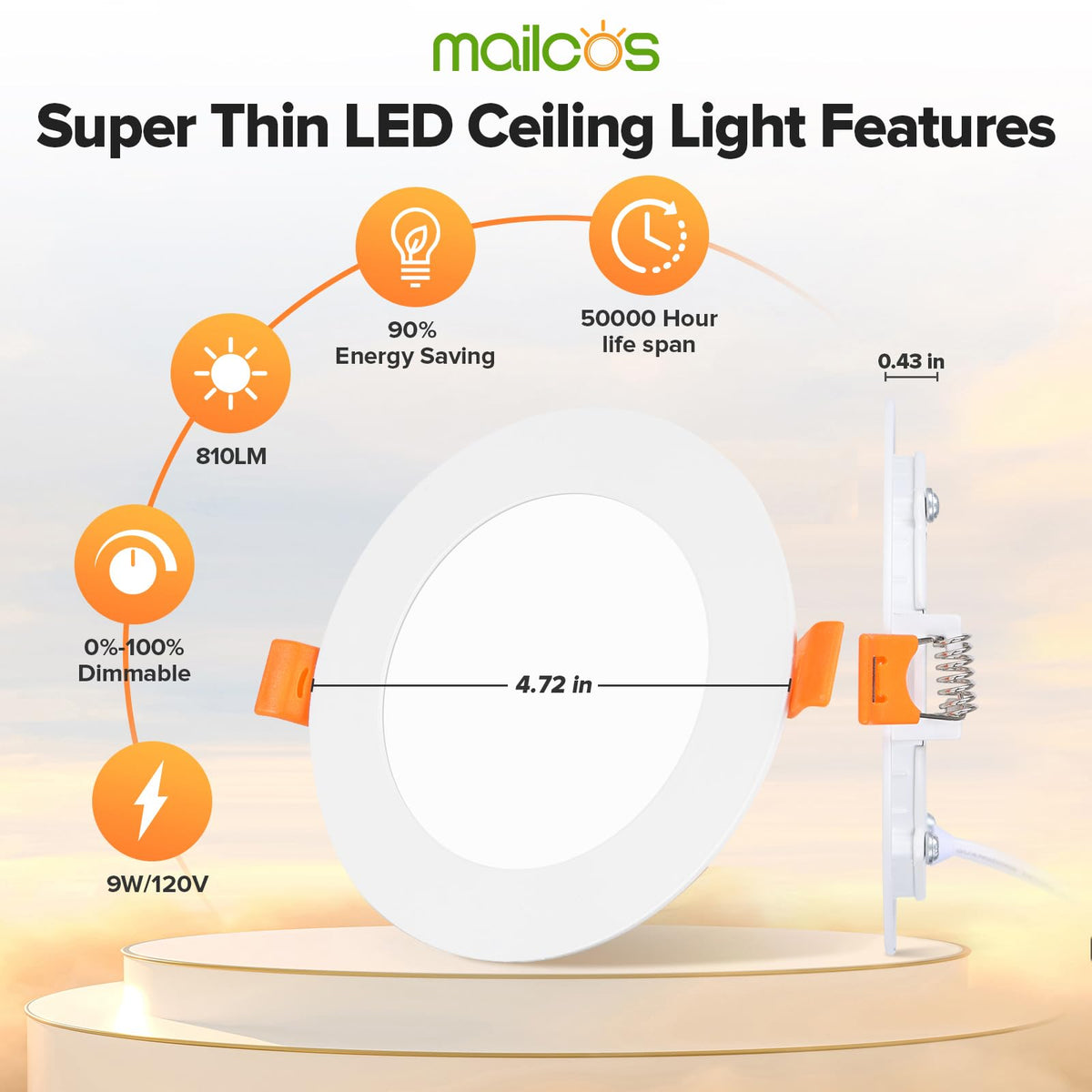 Q: How bright is the MAILCOS 4 Inch LED Recessed Ceiling Light?A: The MAILCOS recessed ceiling light provides high brightness at 810 lumens while consuming only 9 watts of energy, which is equivalent to a 110W halogen lamp. This allows for significant energy savings without compromising on light output.