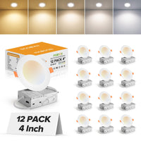 Mailcos 12 Pack 4 Inch 5Cct Ultra-Thin Led Recessed Ceiling Light With Junction Box, 2700K-5000K Selectable, 810Lm High Brightne