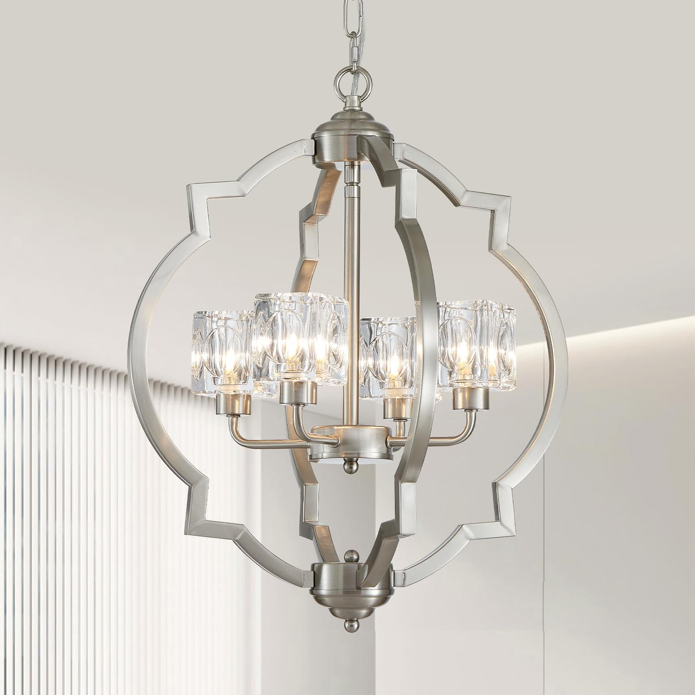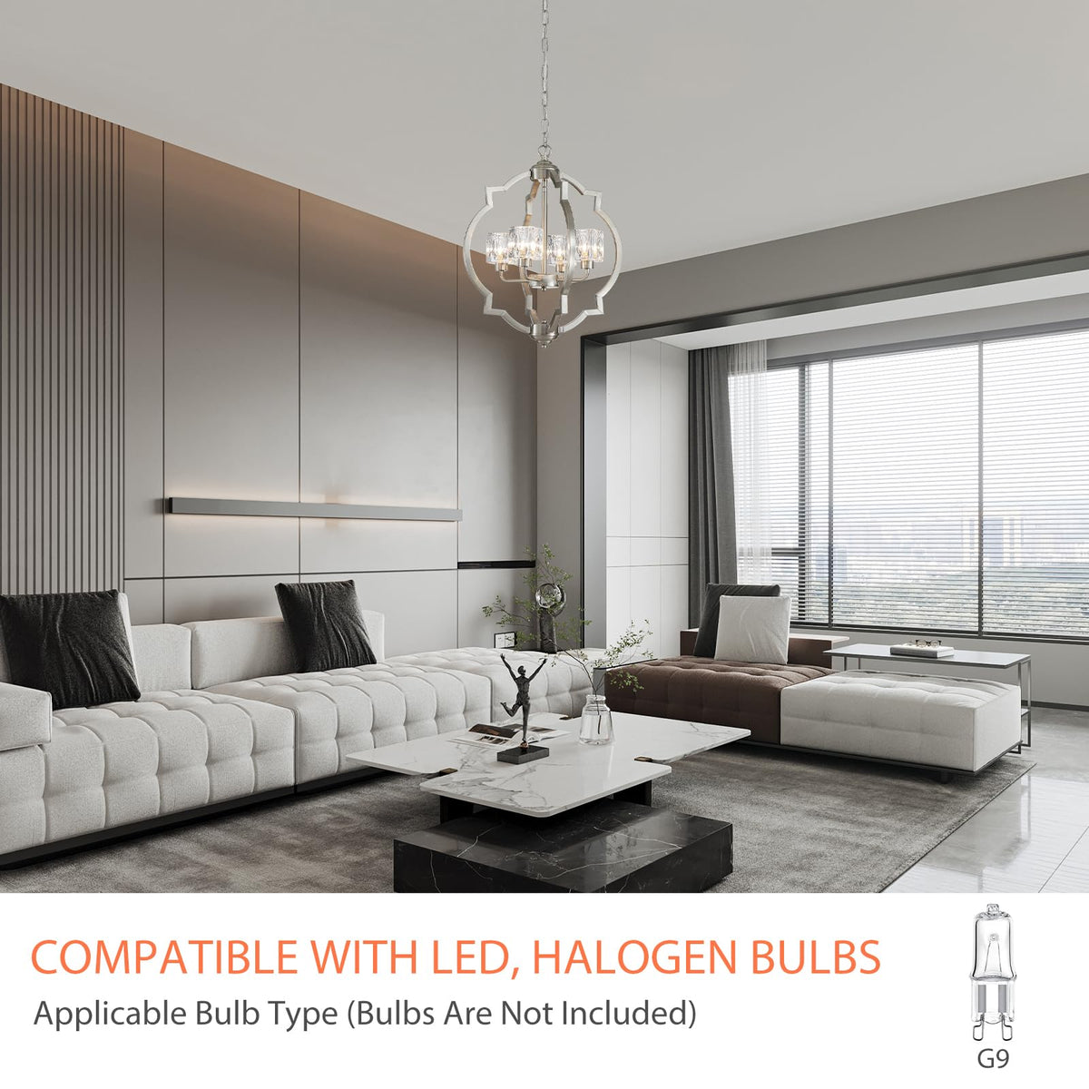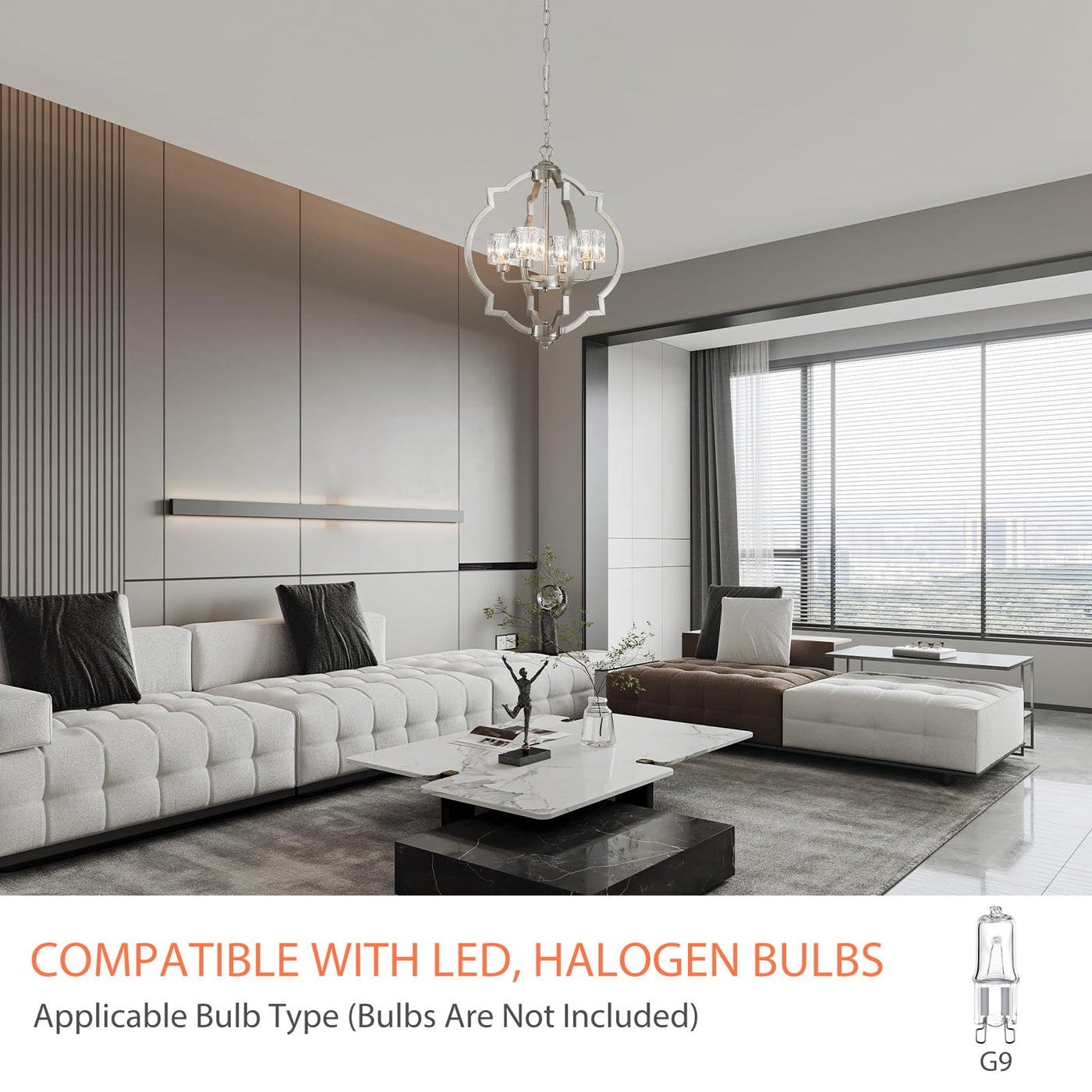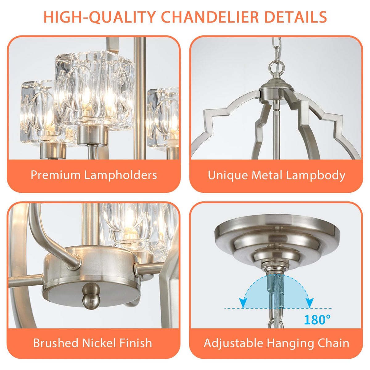 Embrace The Perfect Fusion Of Vintage Farmhouse And Modern Simplicity With Our Geometric Design Chandelier. Crafted With High-Quality Glass Shades And A Sturdy Metal Frame, This Fixture Exudes Timeless Charm And Sophistication. Installing Our Rustic Chandelier For The Living Room Is A Breeze With Detailed Instructions And An Installation Video Provided. Prior To Installation, Remember To Disconnect The Power For Safety. Enjoy The Convenience Of Effortless Installation. Measuring At 17.72X17.72X19.69 Inches, This Brushed Nickel Chandelier Light Fixture Features Four G9 Bulb Sockets Suit For Led, Cfl, Or Halogen Bulbs (35W Max Per Socket, Bulbs Not Included). Its Adjustable Chain Measures 39.37 Inches, Allowing You To Customize The Hanging Height According To Your Preference. This Glass Chandelier Is Versatile And Adaptable To Various Ceiling Types, Including Flat, Sloped, Or Arched Ceilings. It Is Ideal For Farmhouse, Traditional, Vintage, And Other Styles, Making It Perfect For Dining Rooms, Kitchen Islands, Living Rooms, Bedrooms, Entryways, Hallways, And Staircases. Majhoiw Is A Trusted Brand Specializing In Lighting Fixtures. Our Professional Service Team Is Committed To Addressing Any Concerns Or Questions You May Have, Whether It'S Installation Or Quality-Related. Enjoy Peace Of Mind With Our Exceptional Pre- And Post-Purchase Support.