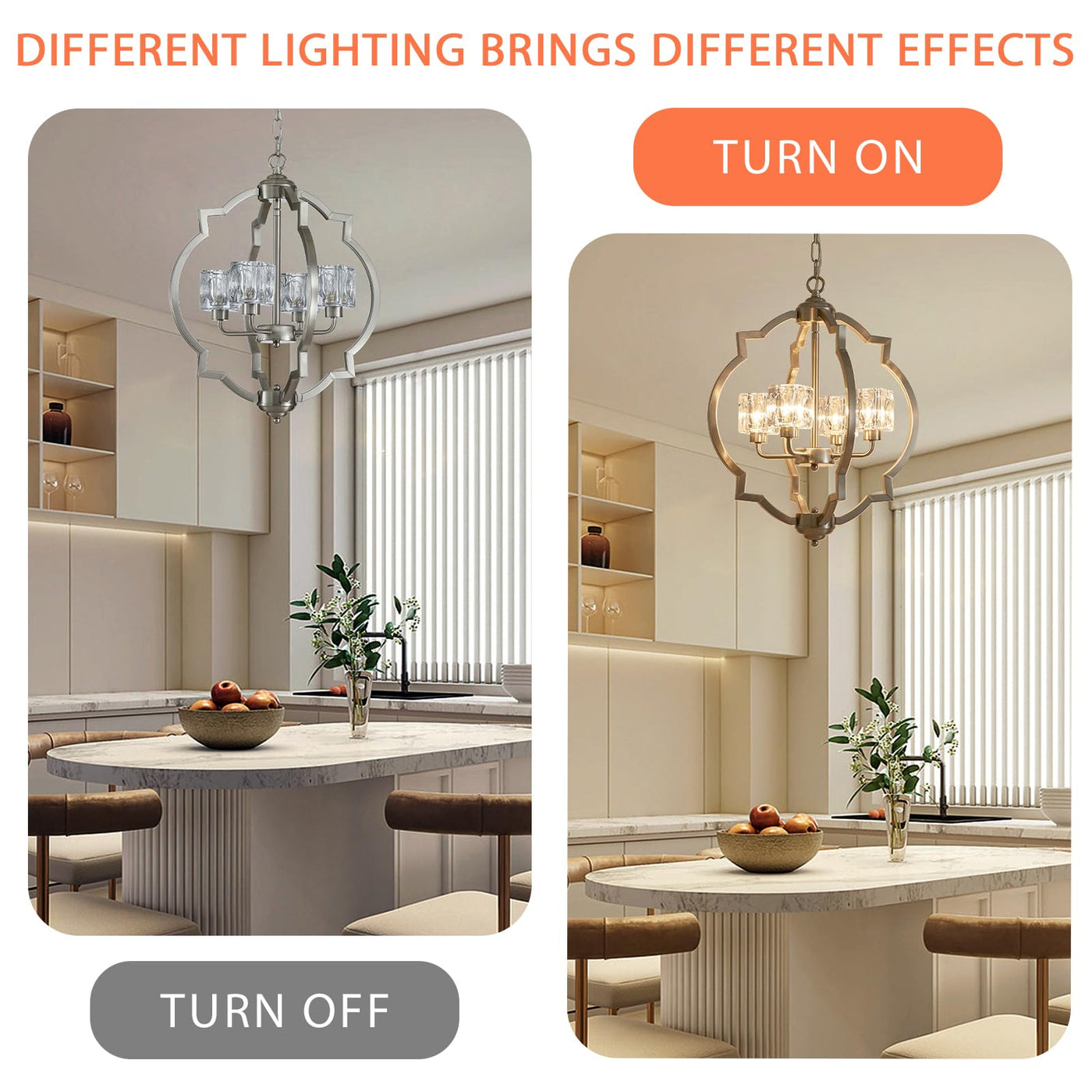 Majhoiw Brushed Nickel Chandelier Large 4-Light Modern Farmhouse Pendant Lighting Fixtures For Dining Room Living Room Bedroom K