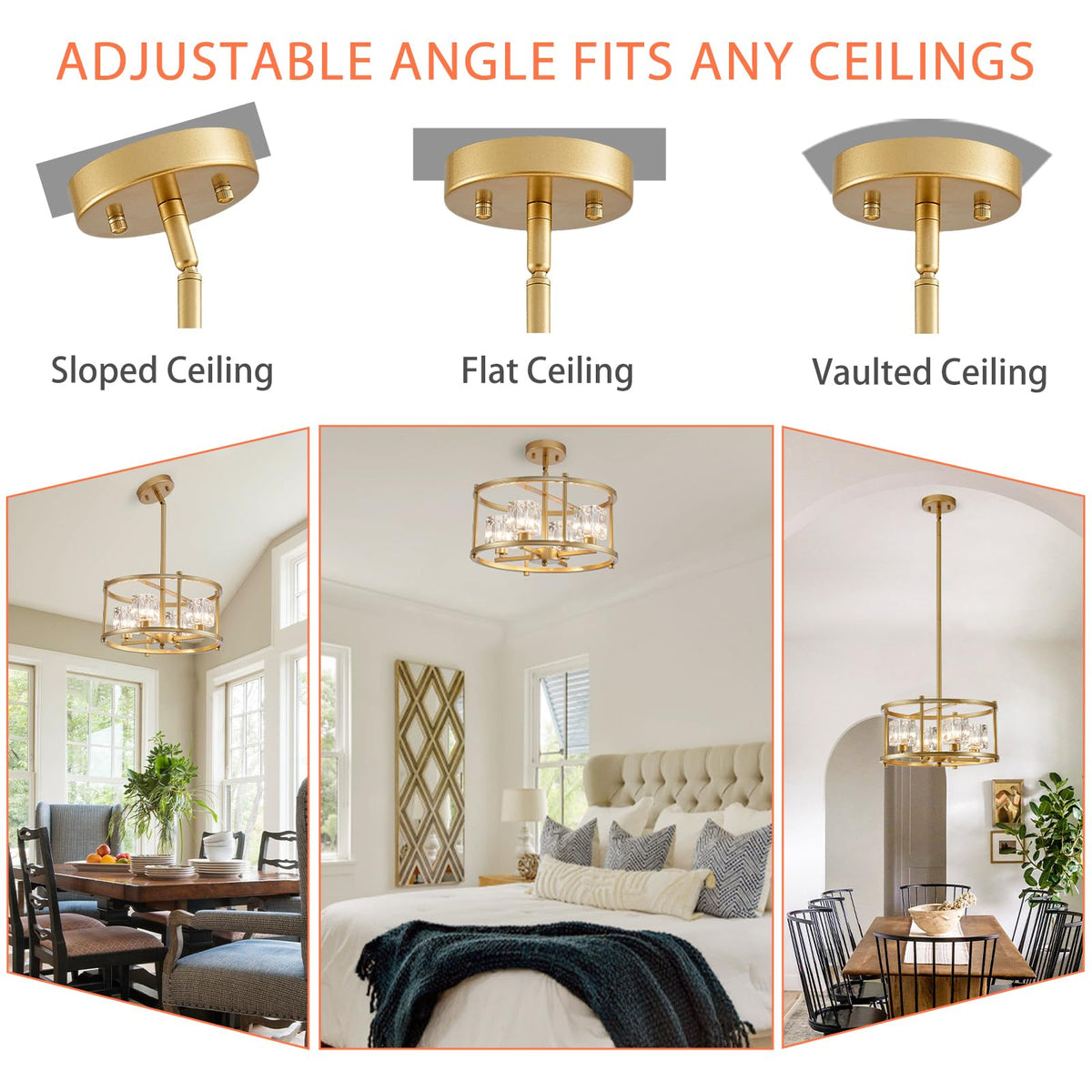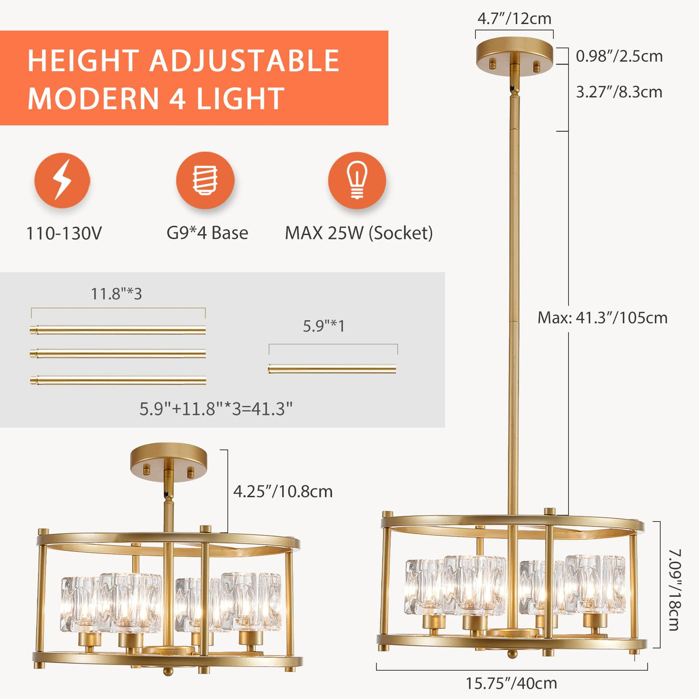Majhoiw Modern Gold Chandeliers For Dining Room Over Table, Farmhouse Pendant Lighting Fixtures Drum Chandelier 4-Light Round Ce