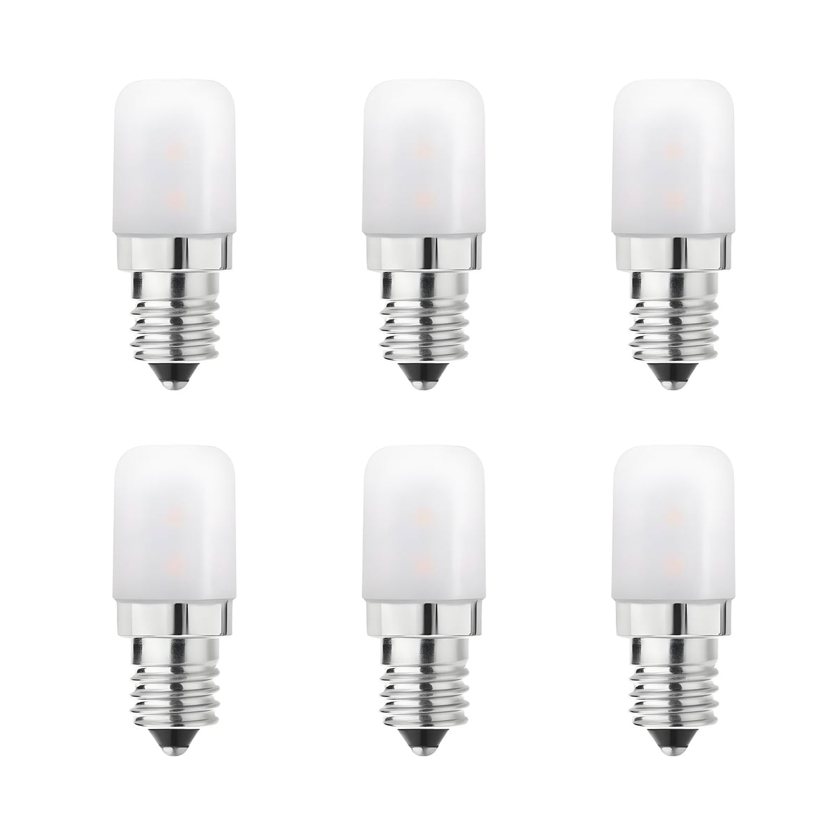 Makergroup E12 LED Light Bulbs for Dryer Refrigerator Water Dispenser Night Light Bulb C7 Candelabra Base Bulbs 120V 2W Cool White 6000K 6-Pack Attention: ? This E12 LED bulb is Not dimmable, which could not work on the dimmer that might cause uncomfortable flicker. It only has 1 brightness level. ?The base is E12 candelabra screw base, ? The working voltage of the bulb is 120V AC Which color to choose? Warm White. Its great for applications that you want soft and relaxing lighting. Cool White. Its great for applications that you want clear and bright lighting. Specifications: Power: 2W Lumen Output: 200 lumen Replacement: 15W-20W Watts incandescent bulbs Color Temperature: 6000K(Cool White) CRI>80Ra Dimmable: No Base: E12 Size: 0.63 (D)x1.73 (H) Lens Color: Frosted Input Voltage: 120VAC Beam Angle: 300 degrees Lifespan: 25,000 hours Material: PC+Aluminum