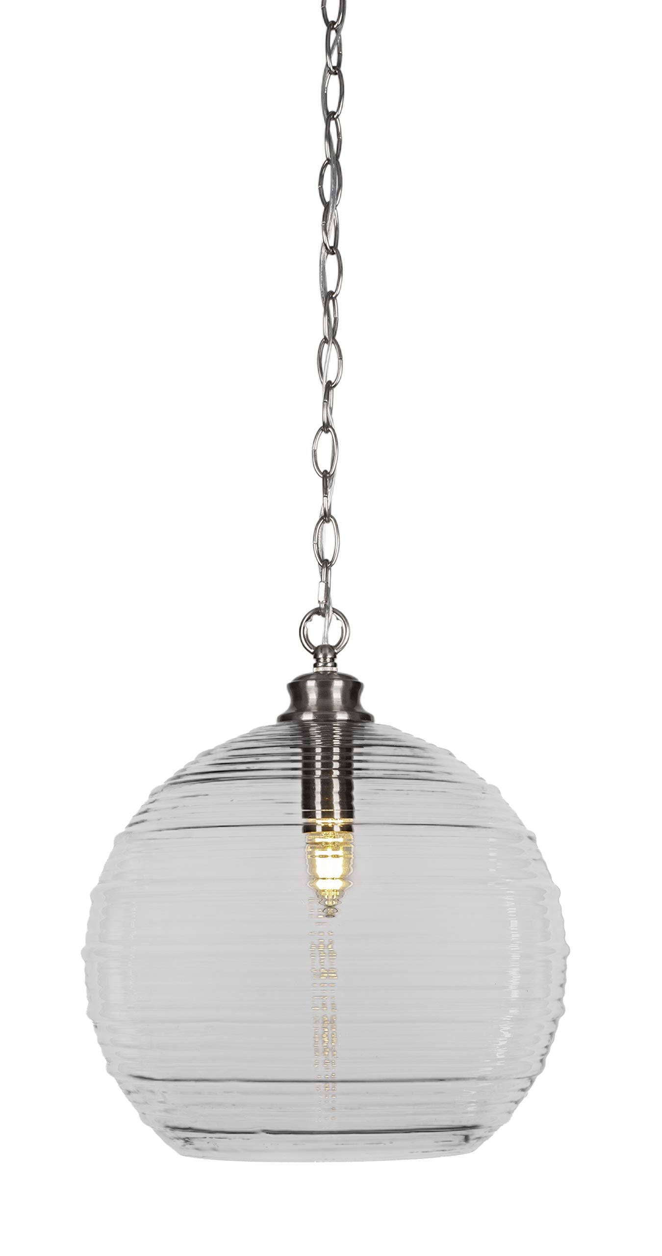 90-BN-5140 Malena Chain Hung Pendant In Brushed Nickel Finish With 14" Clear Ribbed Glass. Rated for: Dry location. Light Bulb Data: 1 E26 60 watt. Bulb included: No.