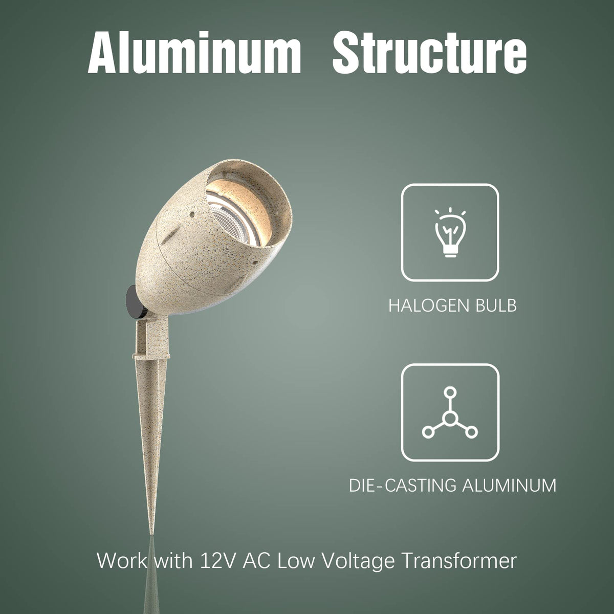 Q: What are the key features of the Malibu 8303-9606-01 flood light?A: The Malibu 8303-9606-01 flood light features a durable sand finish, die cast metal construction, and is corrosion resistant. It also has a clear glass lens and uses a 35 Watt halogen bi-pin bulb for effective illumination.