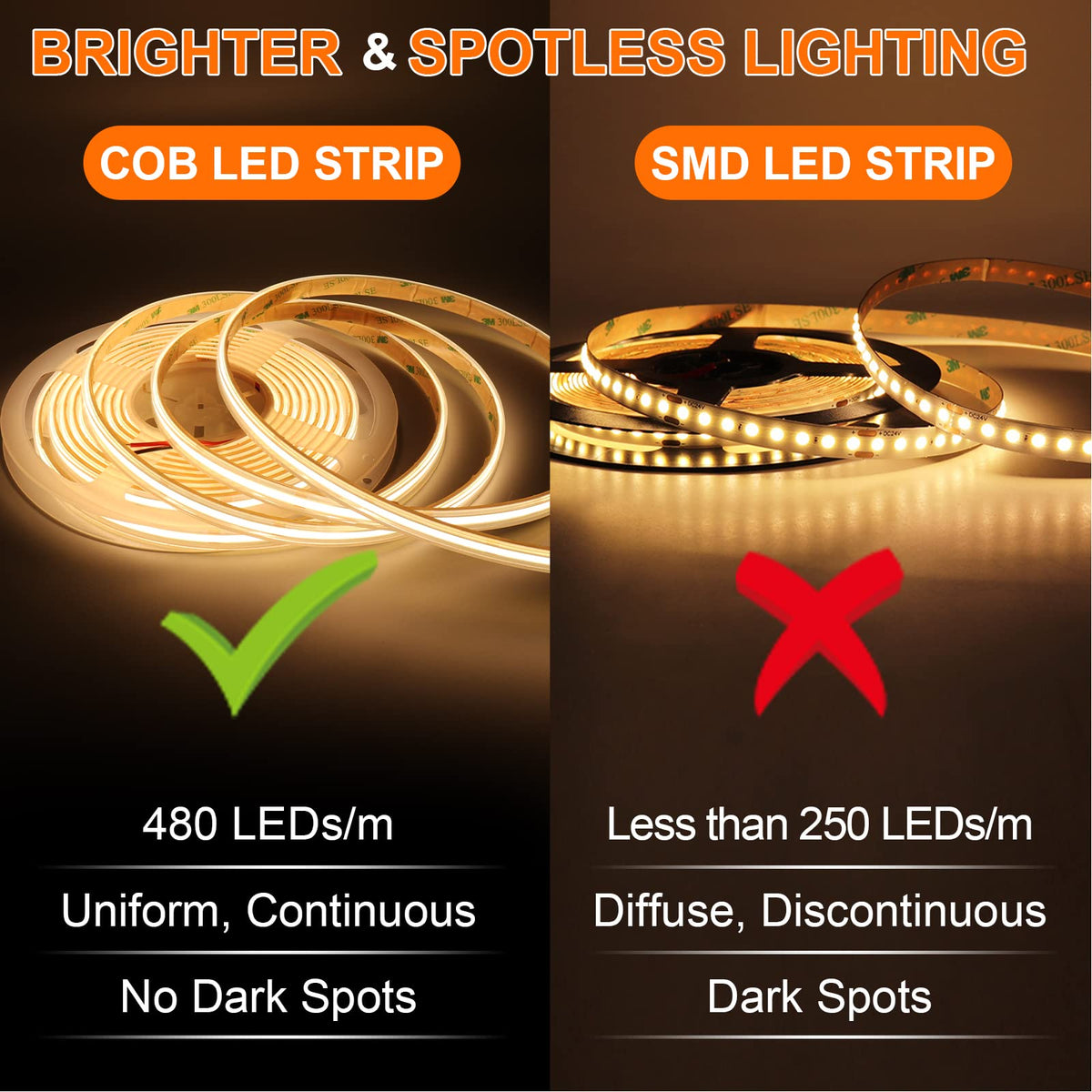 Parameters Product Name: Maligaza Cob Led Strip Light Leds Quantity: 480 Leds/M Pcb Width: 0.31 Inch / 8Mm Strip Width: 0.39 Inch / 10Mm (Including Silicone Tube) Working Voltage: Dc 12V (Can Not Connect To Ac110V Directly!) Color: Cold White (Color Temperature 6000-6500K) Smallest Cut Unit: 1.97 Inch (50Mm) Power: 11W/Meter Package Included 1X 16.4Ft Cob Led Strip