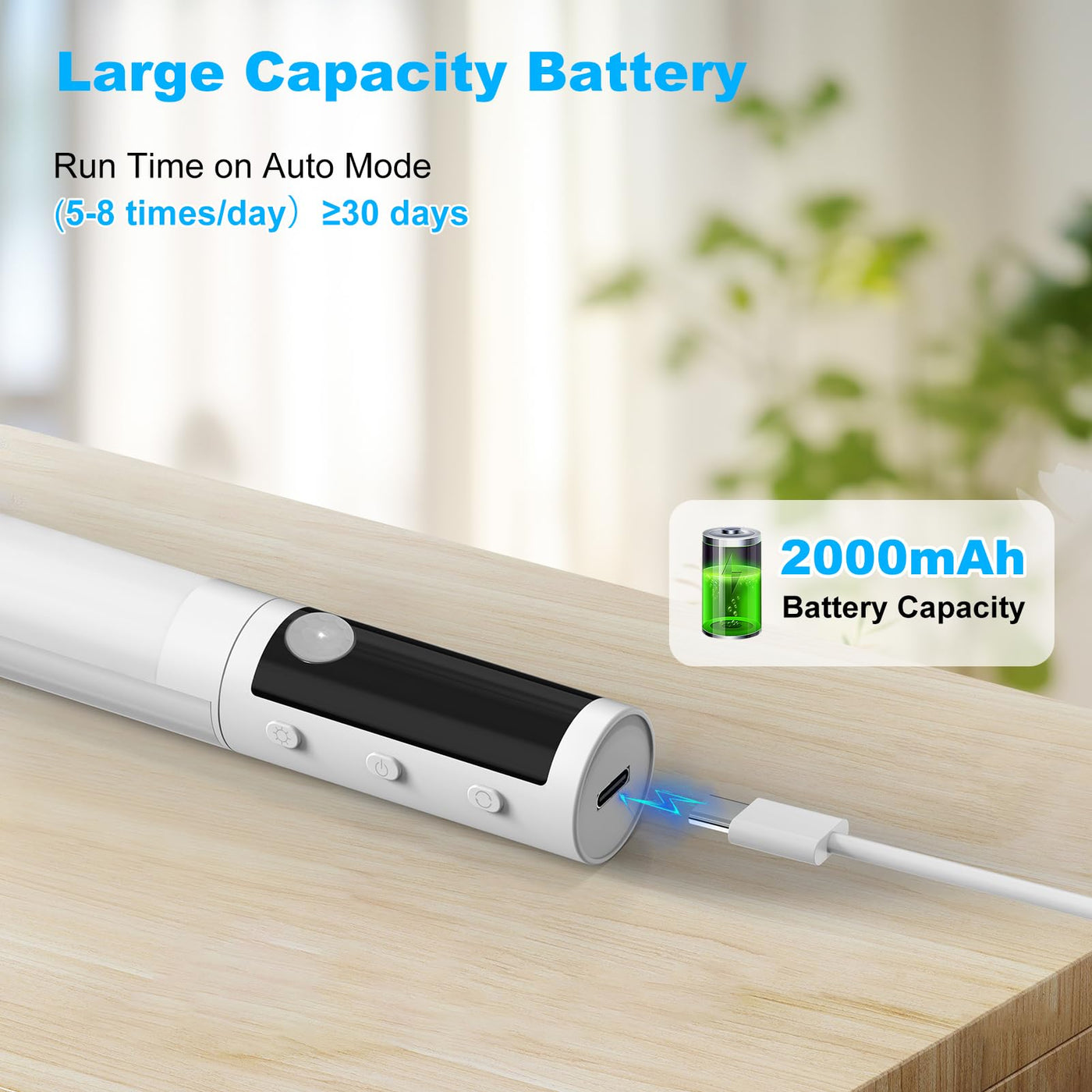 Q: How long does the battery last on a full charge?A: When fully charged, the 2000mAh rechargeable battery of the MALIIGAZA Motion Sensor Lights can provide up to 24 hours of continuous runtime on the lowest brightness setting and around 5 hours on the highest setting.