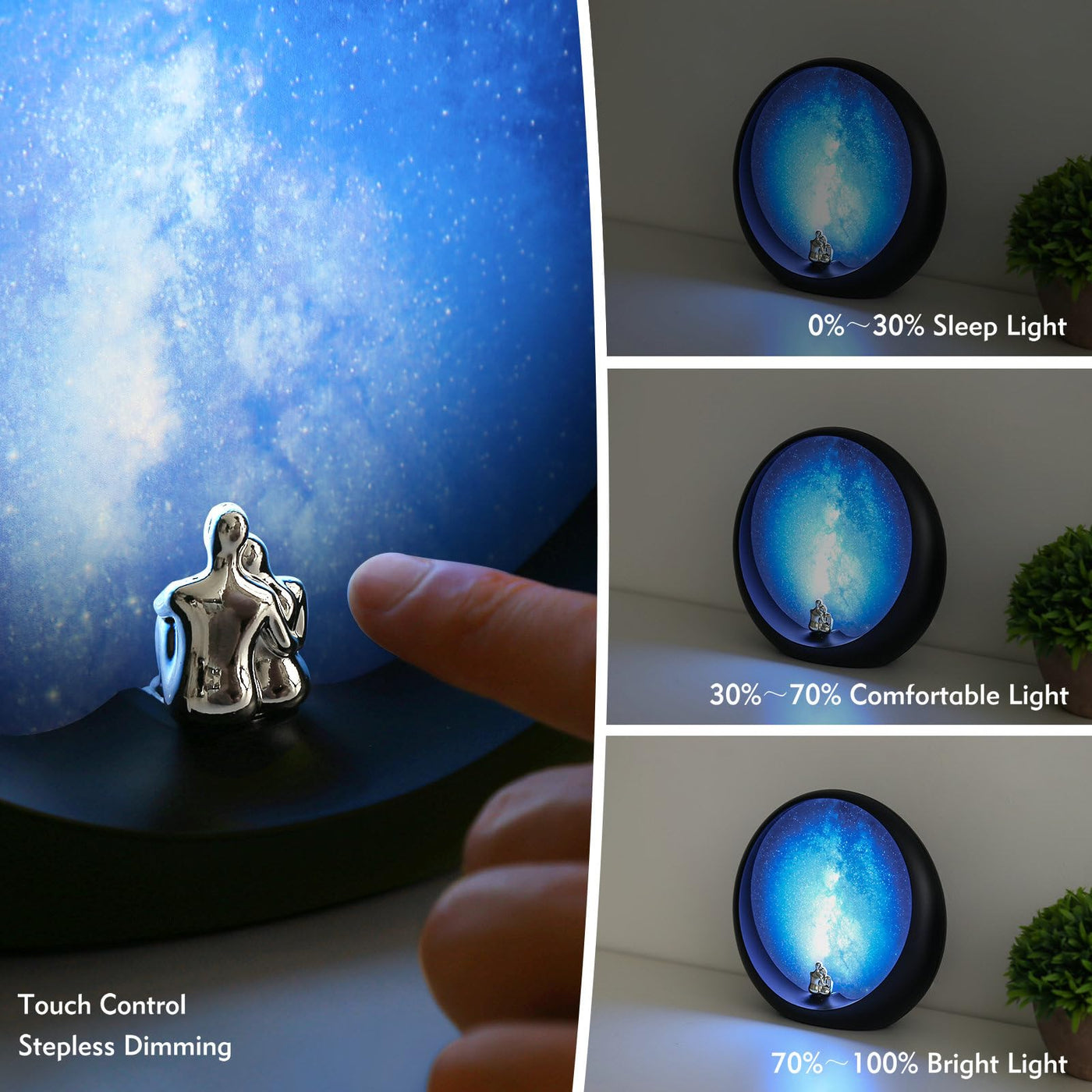 Q: How does the touch sensor work on the Galaxy Space Nightsky Light?A: The touch sensor on the Galaxy Space Nightsky Light allows you to turn the lamp on and off by simply touching the sculpture. To adjust the brightness, you can long-press the figurines, making it easy to customize the lighting to your preference.