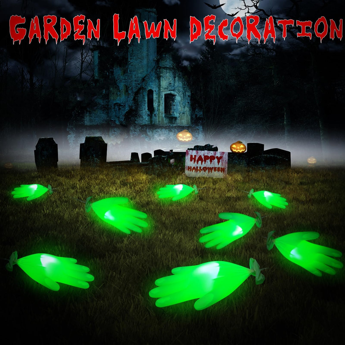 Q: Where can I use these Halloween decorations?A: These Halloween decorations can be used in various locations such as yards, terraces, eaves, gardens, and trees to enhance the festive atmosphere.