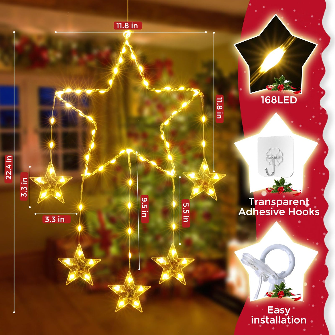 Marchpower 2 big stars and 10 little stars window lights. LED Christmas Window Star Lights - 2Pack Dreamy Catch Star Decoration Battery Operated 8Modes with Timer Hanging Xmas Lights for Indoor Outdoor Glass Window Wall Wedding Party Holiday Decor Widely Applicable Christmas Scenes: This star light is the perfect Christmas decoration, suitable for a wide range of scenes. Whether indoor or outdoor decorations, at birthday parties, Thanksgiving, Christmas, weddings, Valentine's Day, and other festivals, they can add a special atmosphere. Suitable for decorating bedrooms, windows, doors, wreaths, cabinets, Christmas trees, dining tables, and almost anywhere, filling every space with the joy and warm glow of the festival.