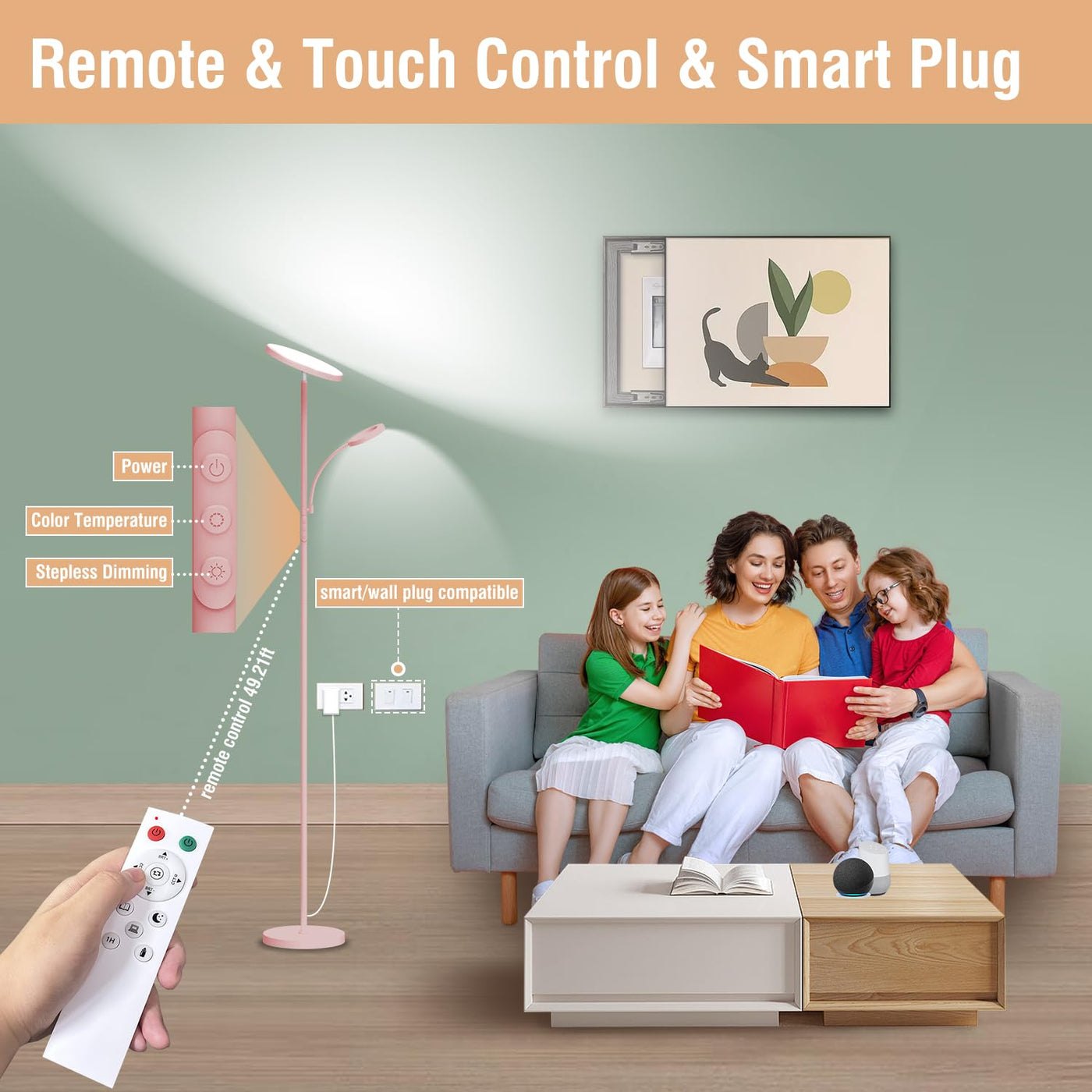 Pink Led Floor Lamps For Living Room Mother Daughter Floor Lamp This Floor Lamp Comes With 2 Heads, The 36W Sky Led Torchiere Main Light Can Meet The Demands Your Living Room, And The 7W Flexible Neck Light Can Be Freely Adjusted Up And Down Within A Certain Distance, Perfect For Any Task, Such As Reading, Working Or Sewing. 4 Colors Temperature Both Of The Light Have 4 Color Temperature 2700K -6500K White Light, And They Have Different Adjustment Switches. Remote Control In The Range Of 49Ft, You Can Easily Control The Floor Lamp Without Leaving The Sofa And Warm Bed With The Remote Control.