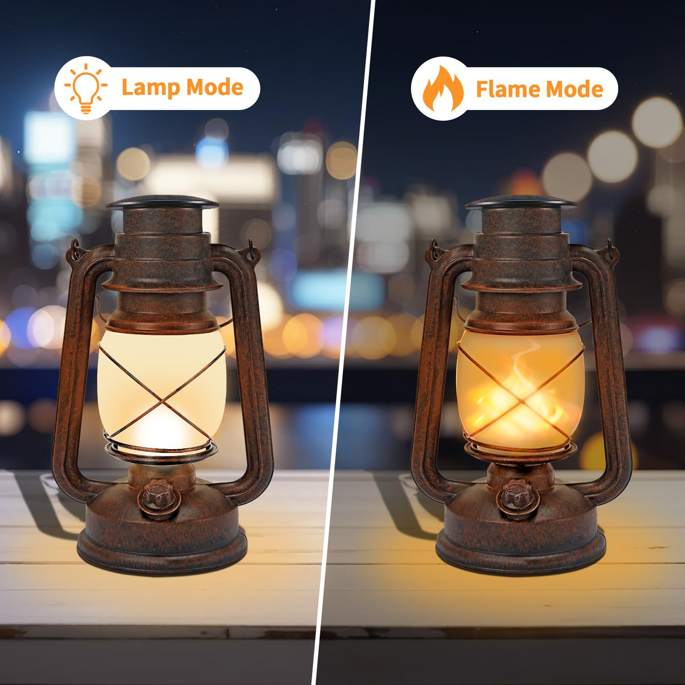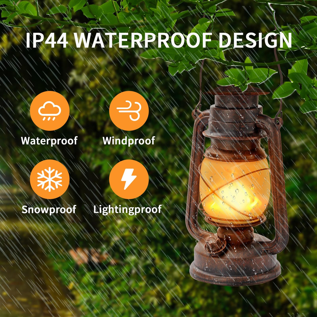 Q: What are the key features that make this lantern unique?A: This lantern features a vivid flickering flames design that mimics real flames, creating a warm and inviting atmosphere. Its retro vintage design adds aesthetic appeal, making it a great choice for outdoor decor during events like parties and weddings.