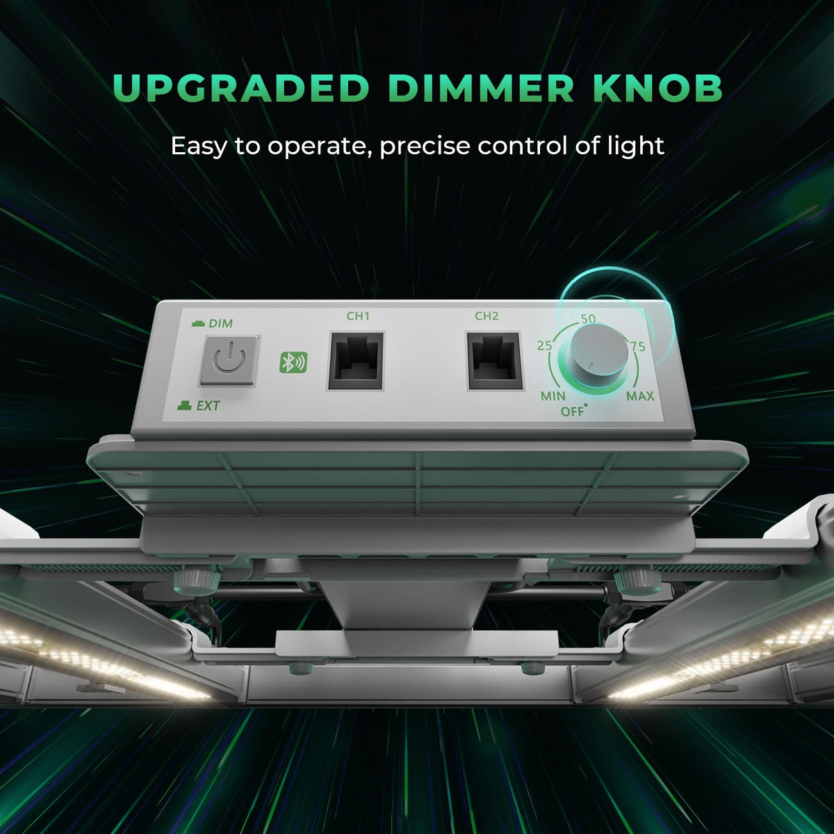 Q: How does the dimming feature work on this LED grow light?A: The FC-E8000 features an easy dimming function that allows you to control the light intensity according to the different growth stages of your plants. It can also support a daisy chain setup for up to 30 lights, enabling centralized control.