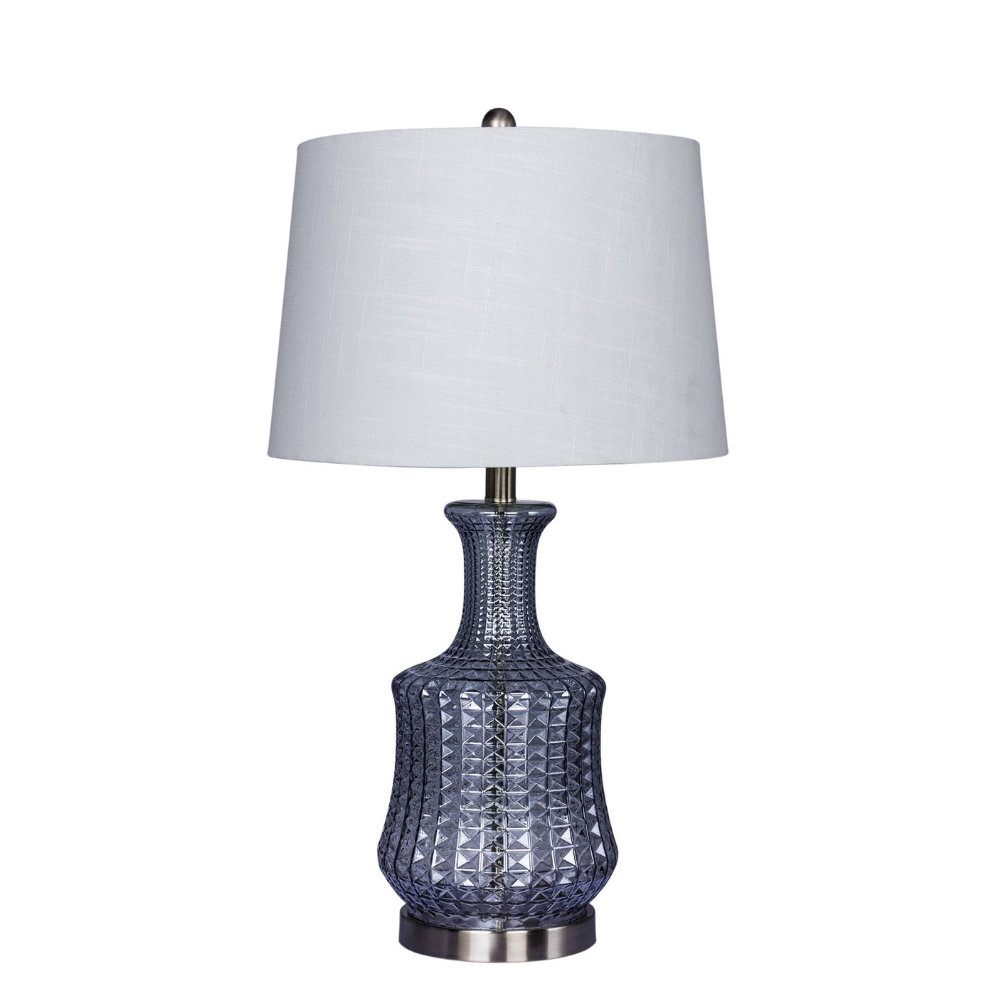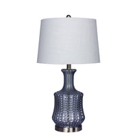 Transform your living space with Fangio Lighting's #5156LB 27.5 in. Modern Riveted Light Blue Glass & Brushed Steel Metal Genie Bottle Table Lamp. This exquisite lamp combines a striking design with practical functionality, making it a perfect addition to any room. Its unique aesthetic brings a whimsical flair, while the high-quality materials ensure lasting elegance.