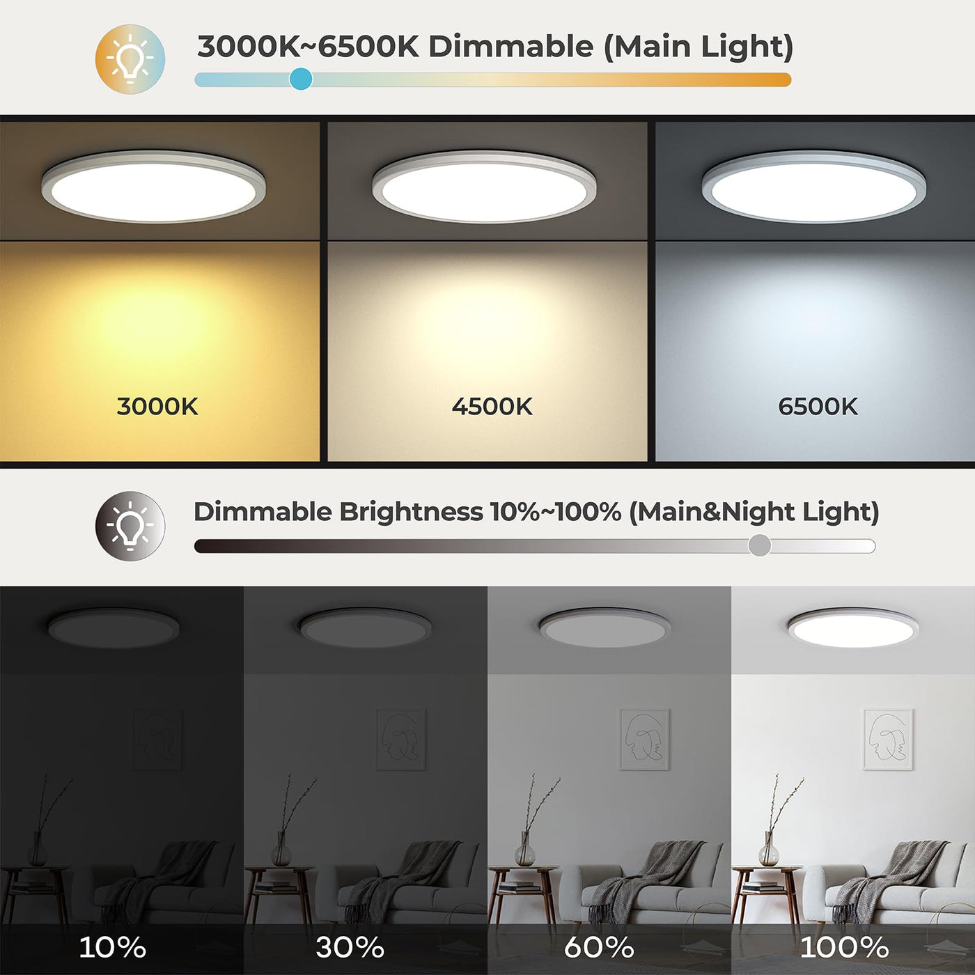 Matane 12In Led Flush Mount Ceiling Light Fixture With Remote Control, Nightlight 2000K Warm, 3000K-6500K Adjustable, Wired Low