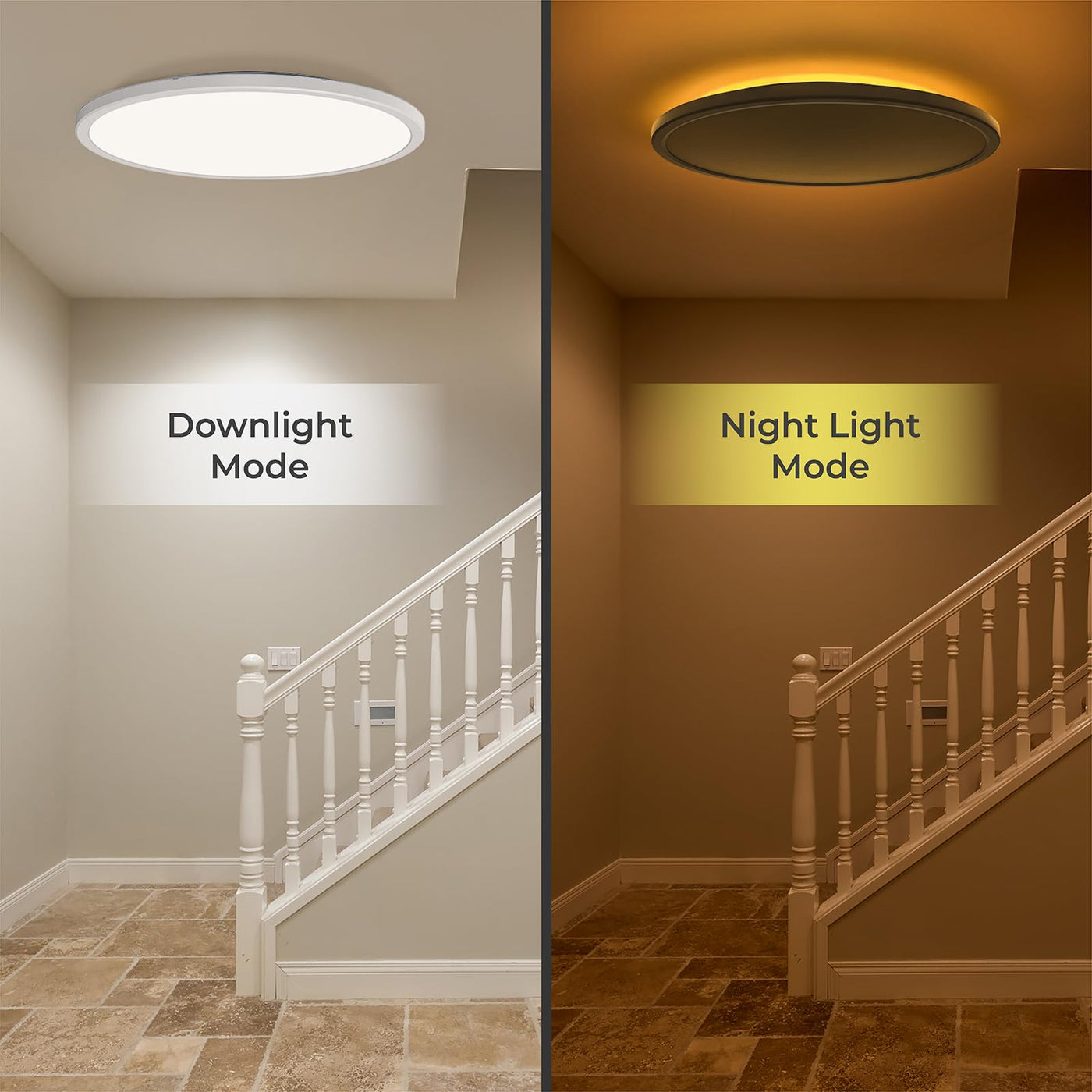 Night Light Feature: Ceiling Light Comes With A Back Night Light, Featuring A Warm And Comfortable 2000K Color Temperature. This Gentle And Soothing Light Provides The Perfect Ambiance For Nighttime Use. Enhance Your Comfort And Convenience With Back Night Light Feature. Just Press The Button On The Remote Control, You Can Easily Activate Or Deactivate The Night Light, Providing A Soft And Comforting Glow For Your Bedroom Or Hallway. Wide Applications? With Its Ultra-Thin Design And Versatile Functionality, This 15.4 Inch Ceiling Light Is Suitable For All Interior Design Styles And Can Be Used In Various Environments Such As Bedrooms, Living Rooms, Kitchens, Offices, And Hallways. Experience The Ambiance-Enhancing Benefits Of The Soft Back Lighting Feature. This Gentle Illumination Creates A Warm And Inviting Atmosphere, Perfect For Setting The Mood In Any Room.