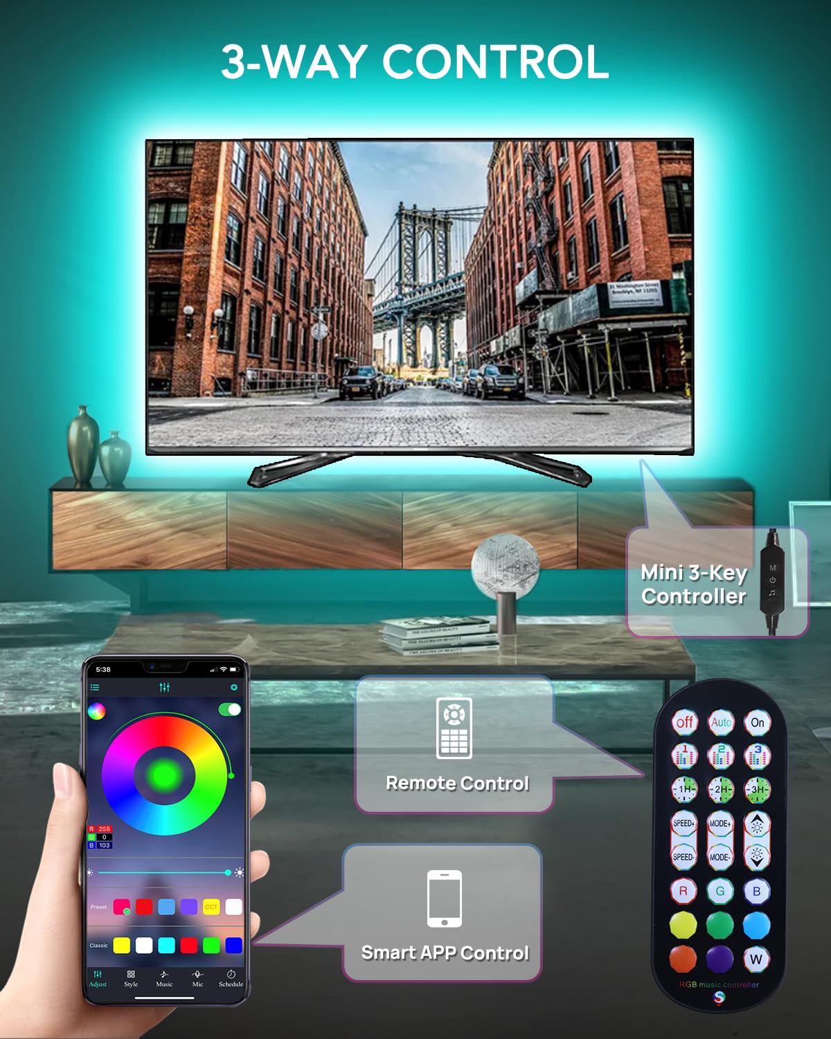 Maticod Led Lights For Tv, 16.4Ft Rgb Strip Lights For Tv Behind 50-70In Tv, Bluetooth App Remote Control Music Sync Tv Backligh