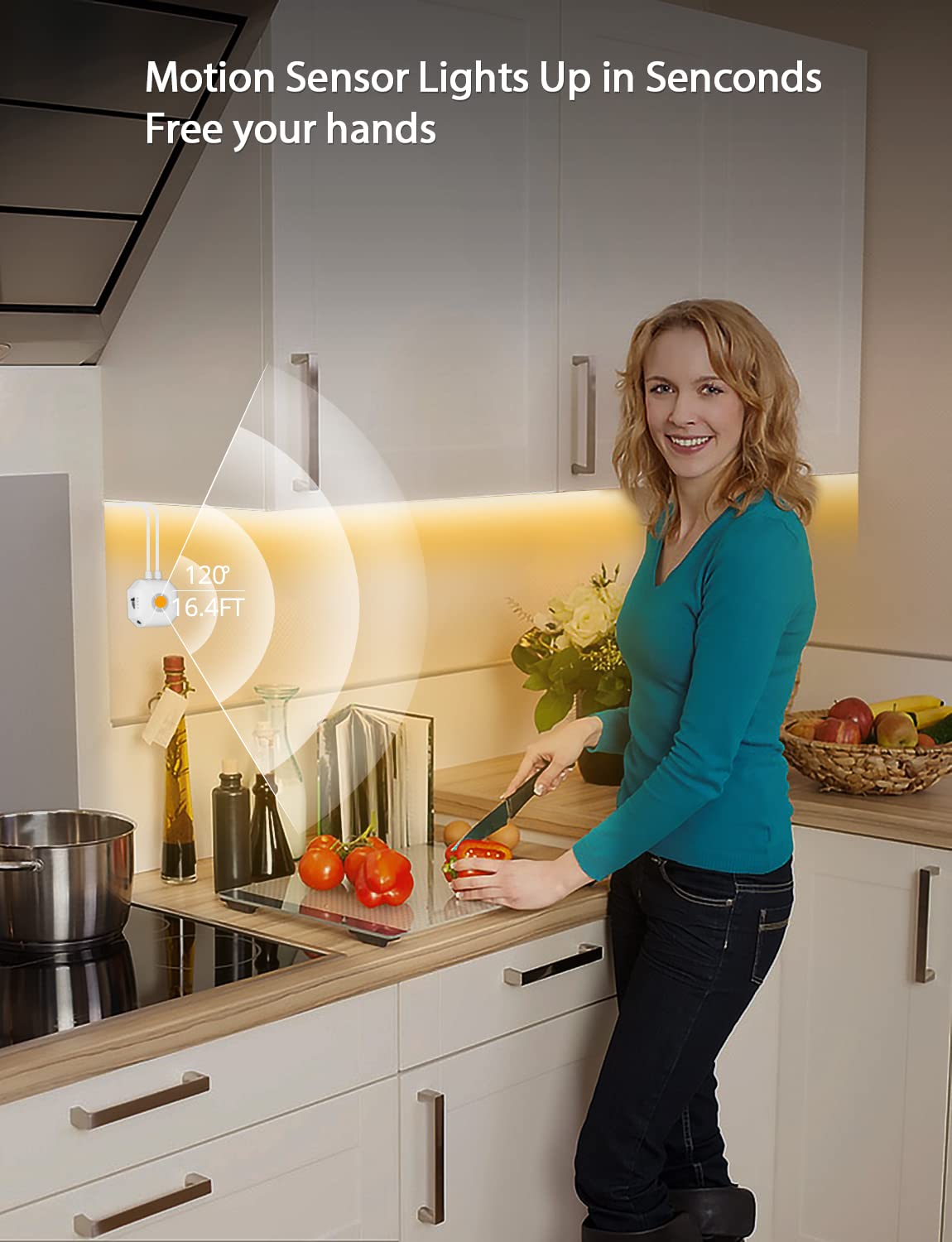 Maticod Motion Sensor Lights Indoor Under Bed Lights, 3500K Motion Sensor Led Strip Lights For Bedroom, Warm White Under Cabinet
